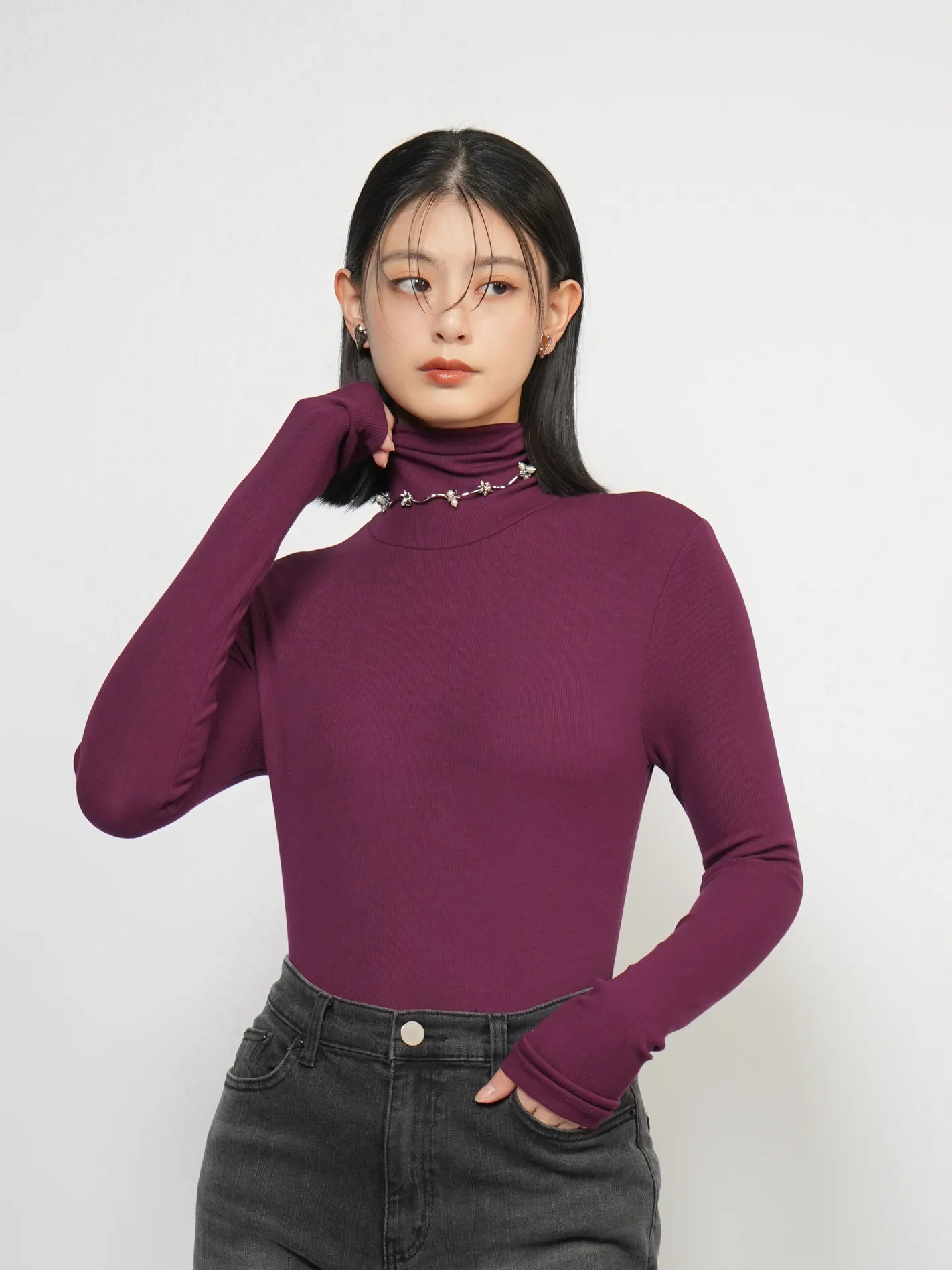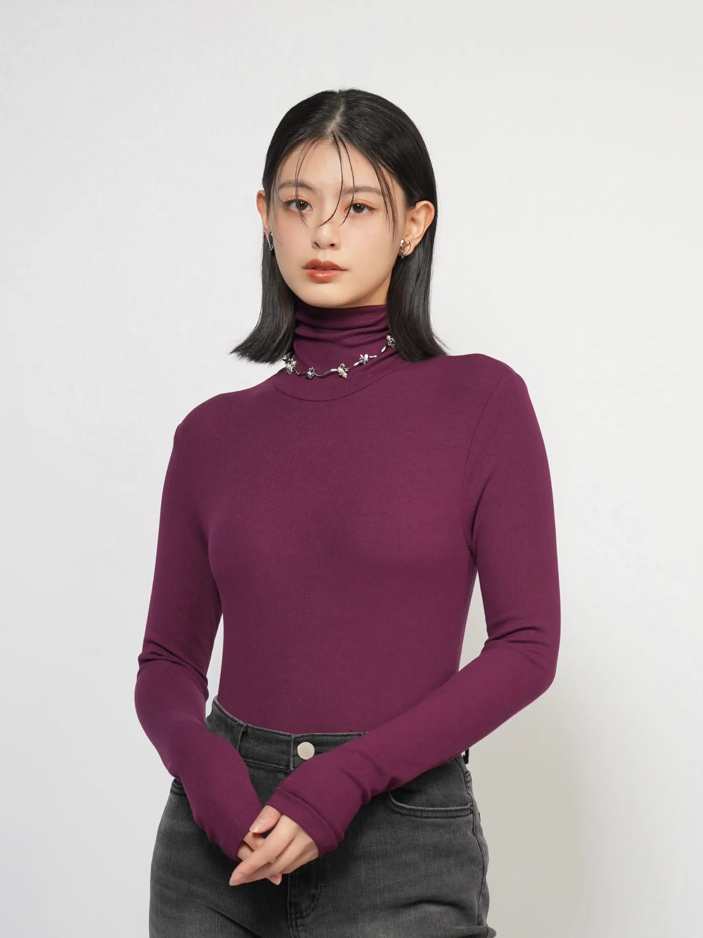 (限量現貨)極舒適!極修身!超彈高領上衣(葡萄酒紅)
