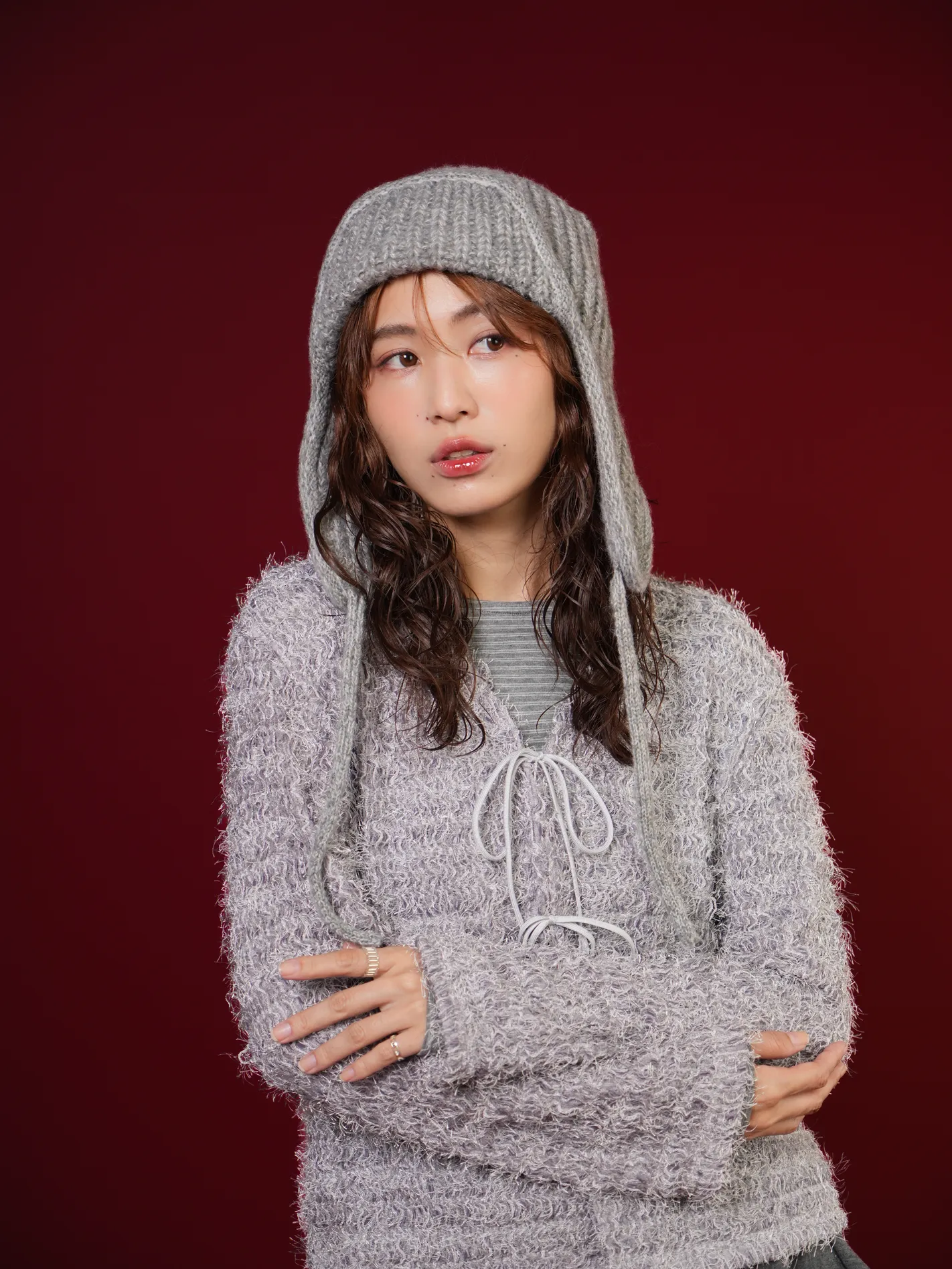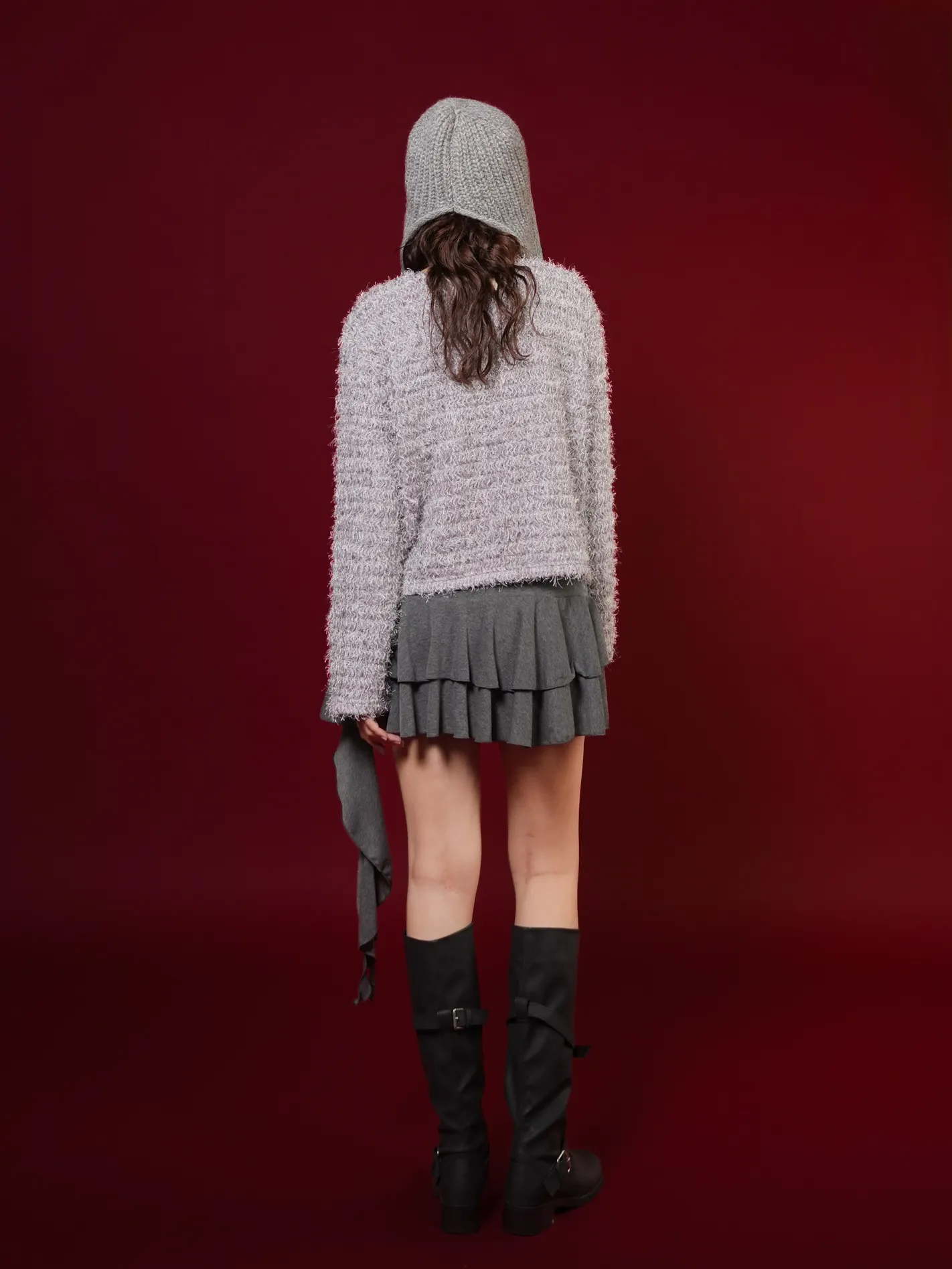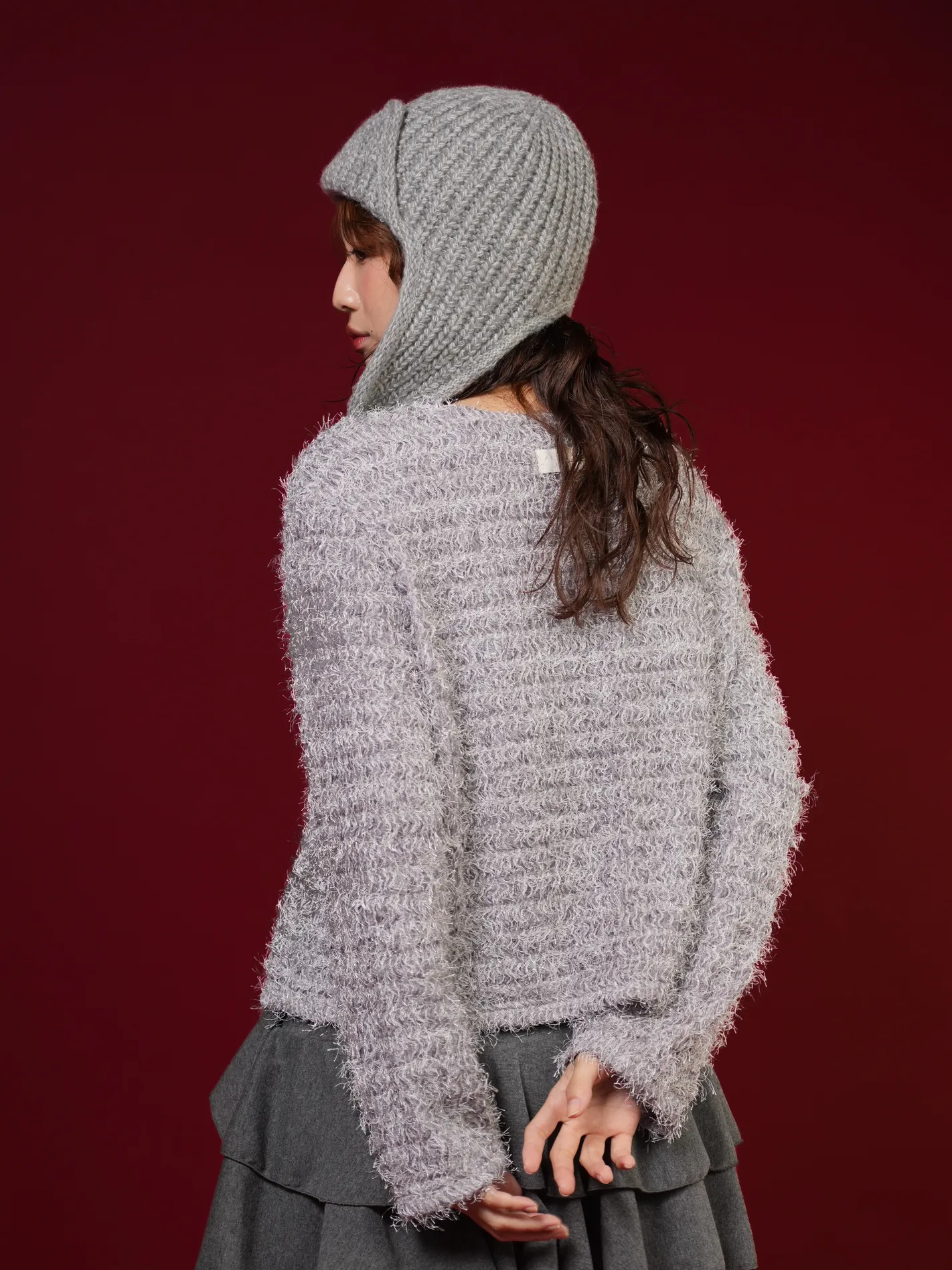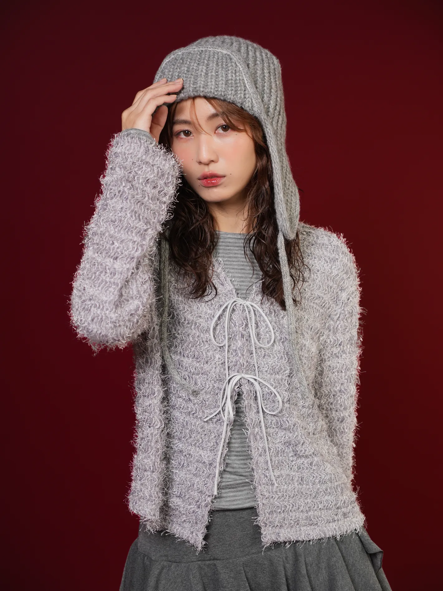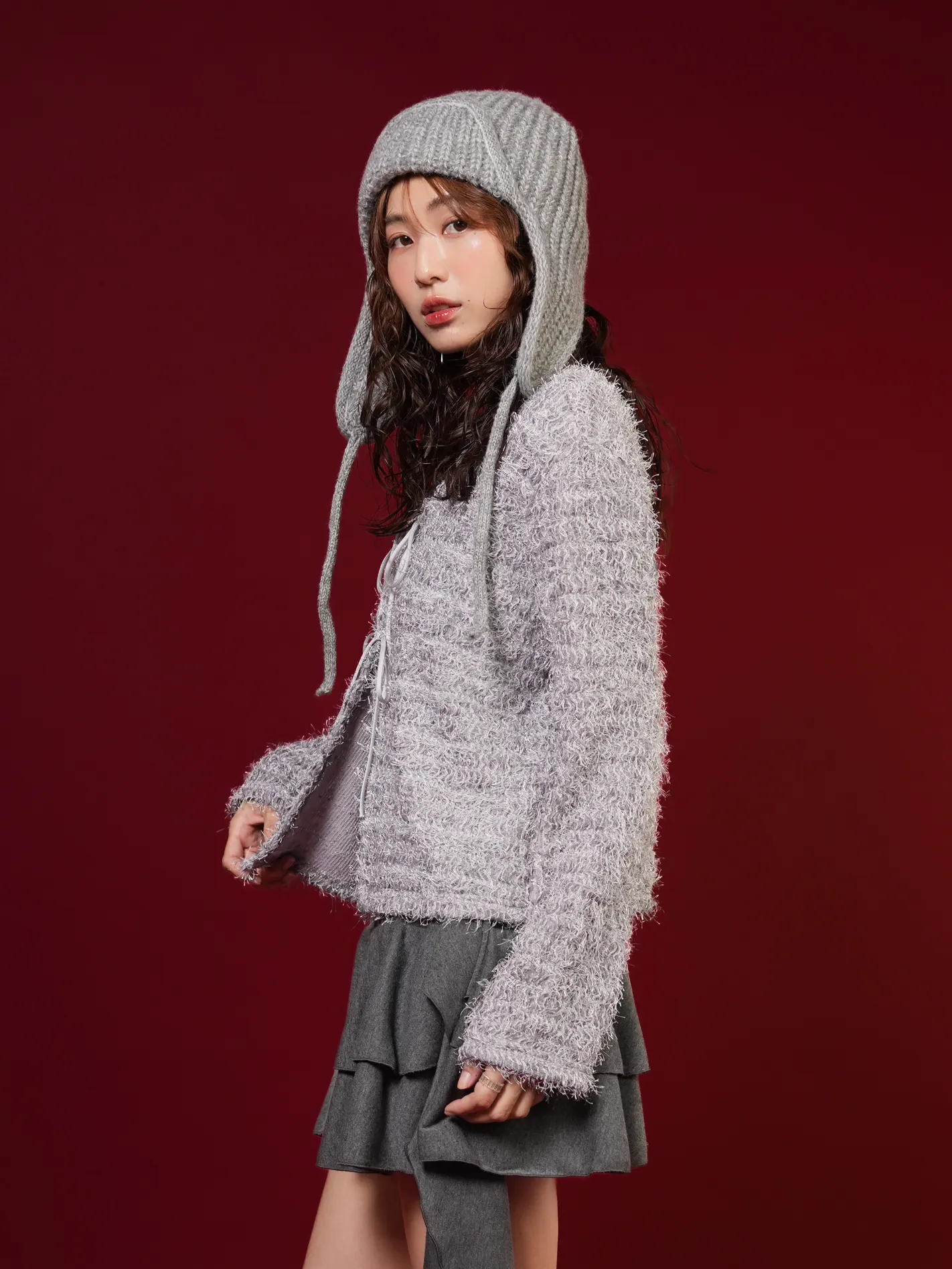 (限量現貨)毛絨圈圈紗綁帶開襟外套(灰)