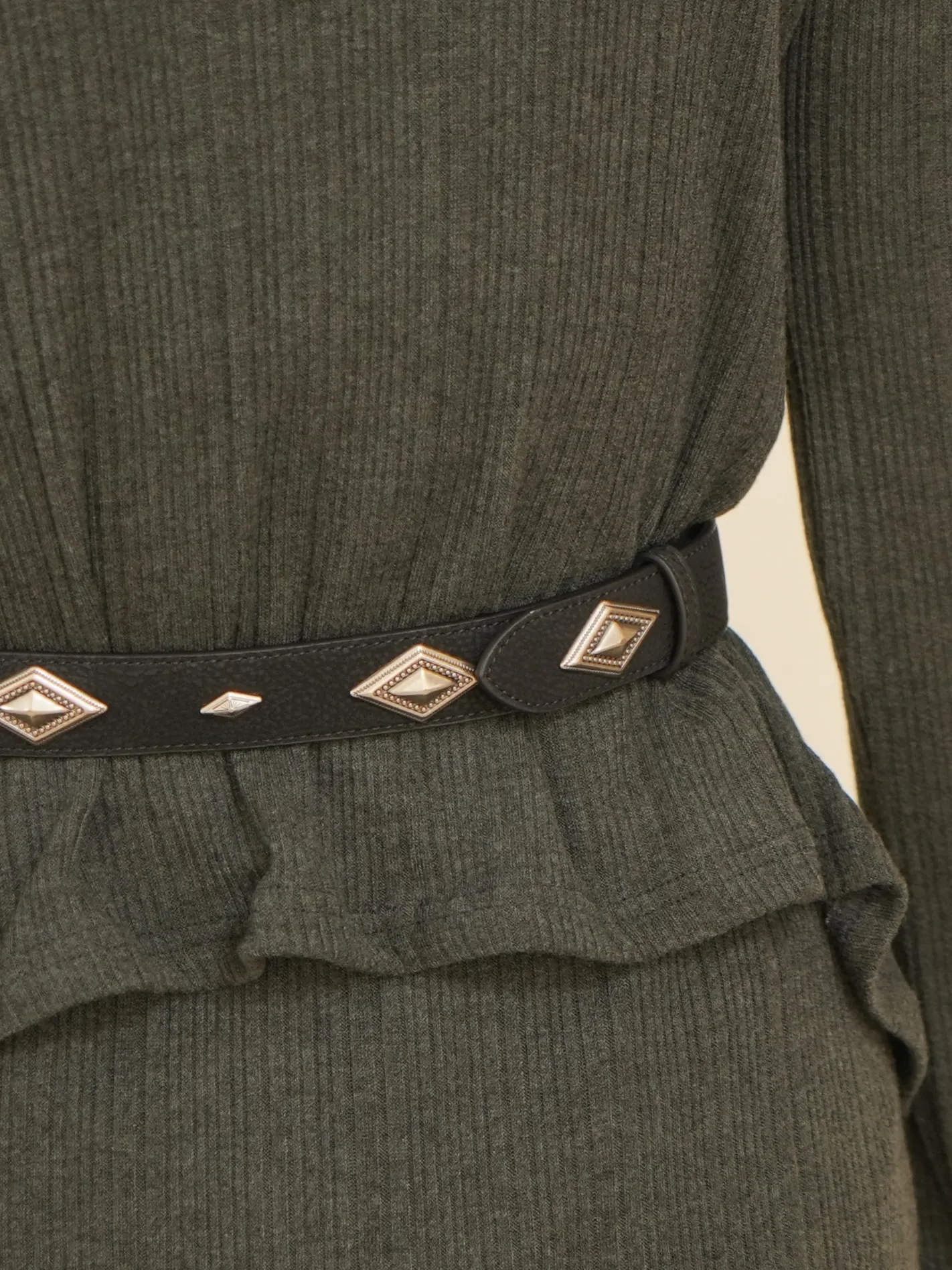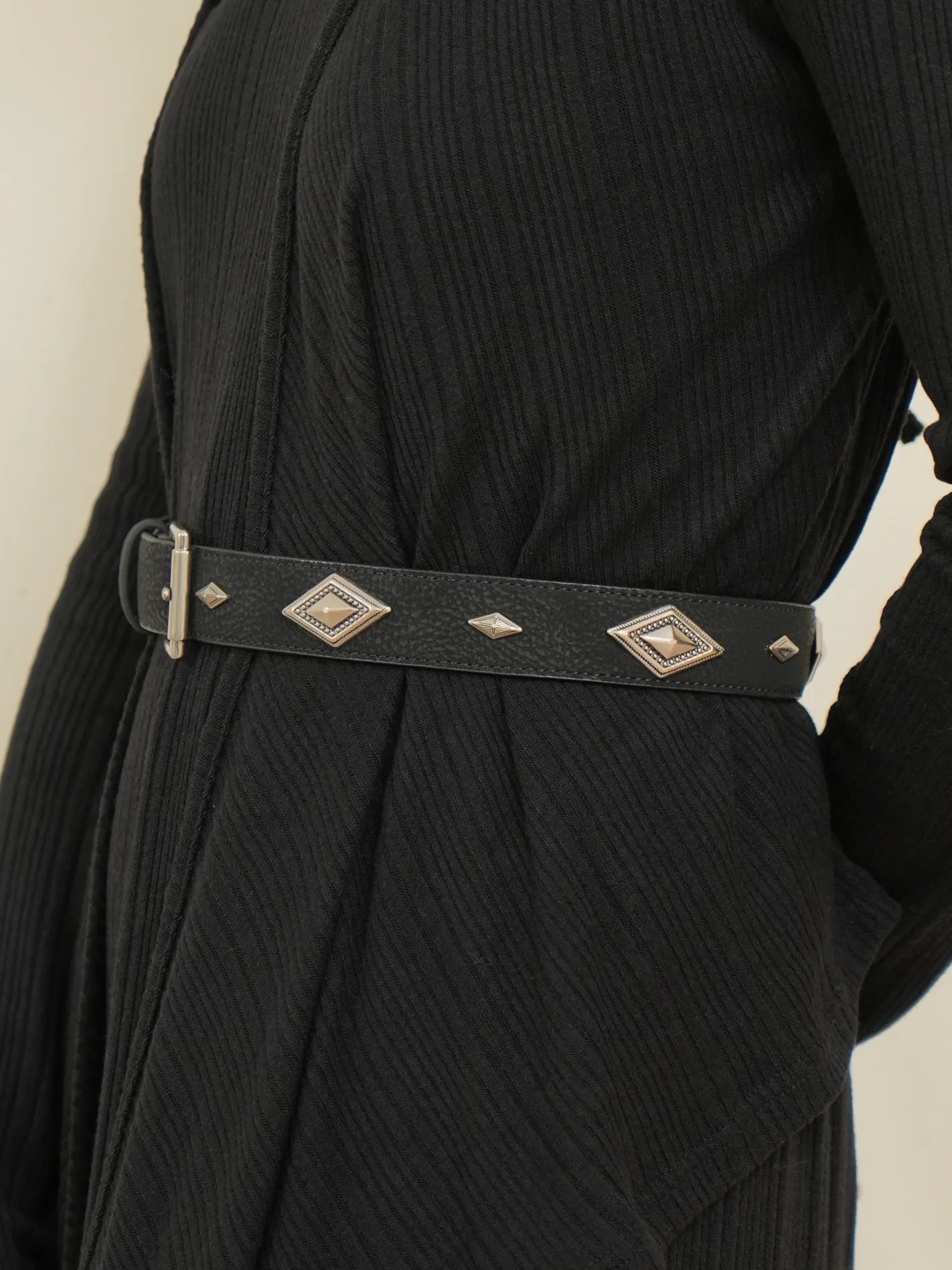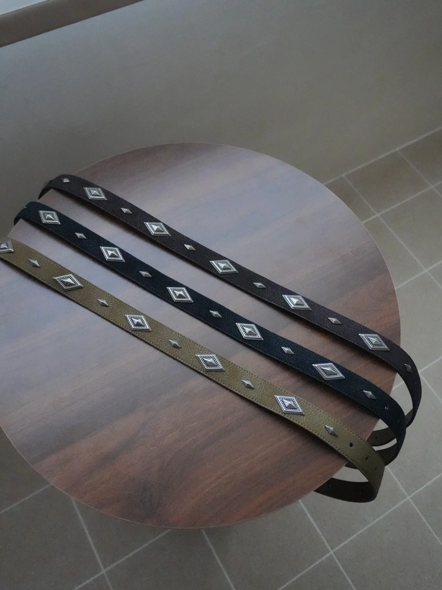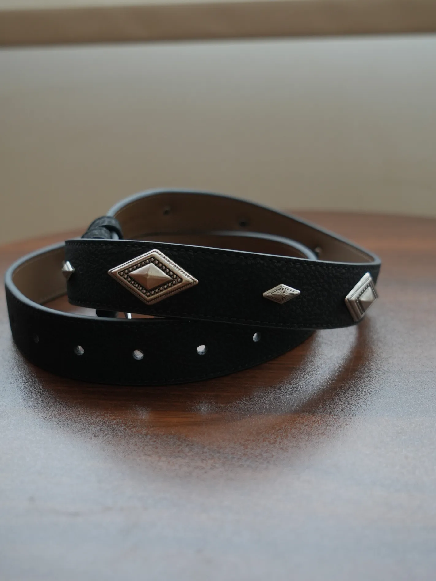 (現貨)菱格雕飾牛皮皮帶(黑)