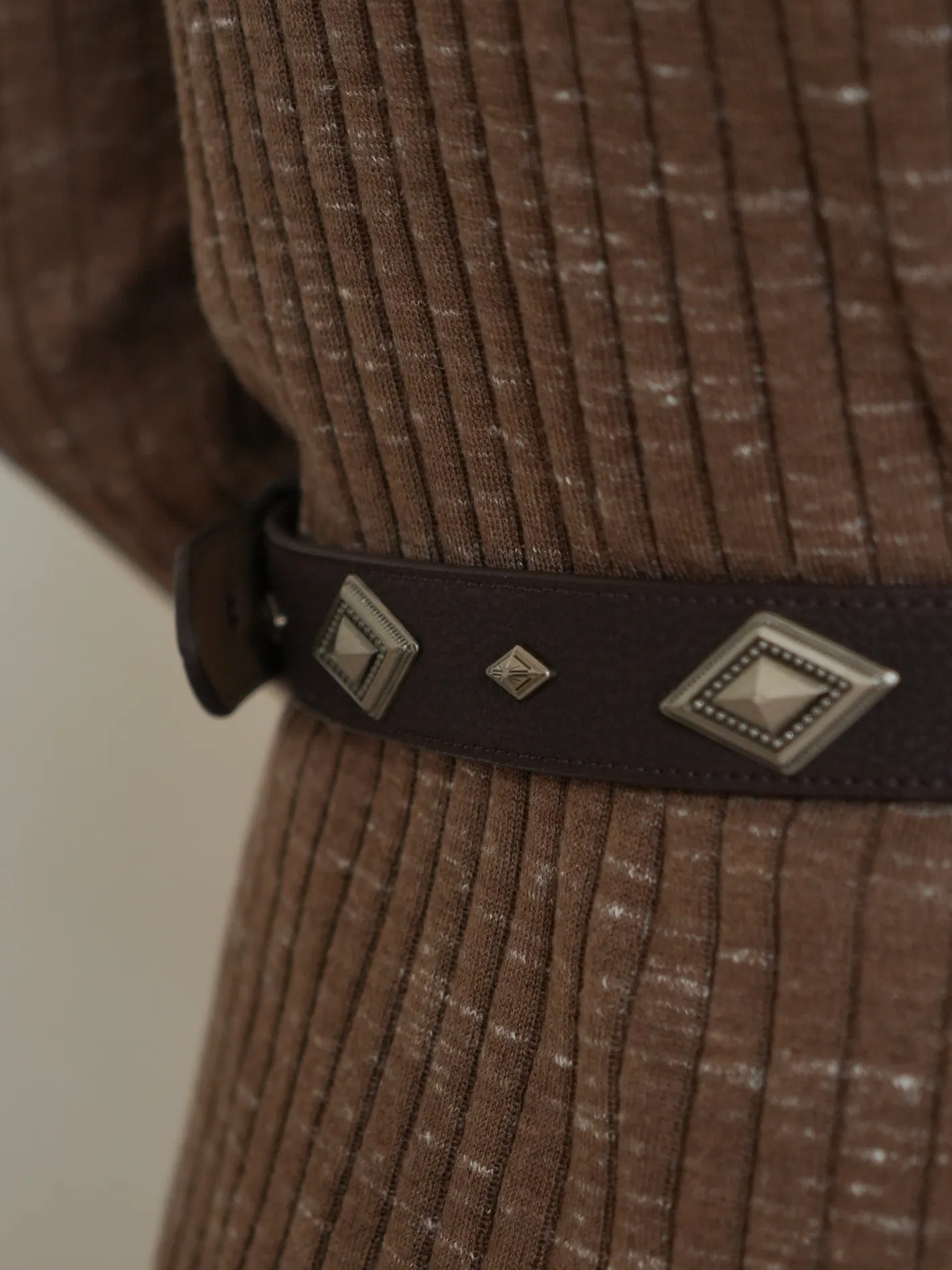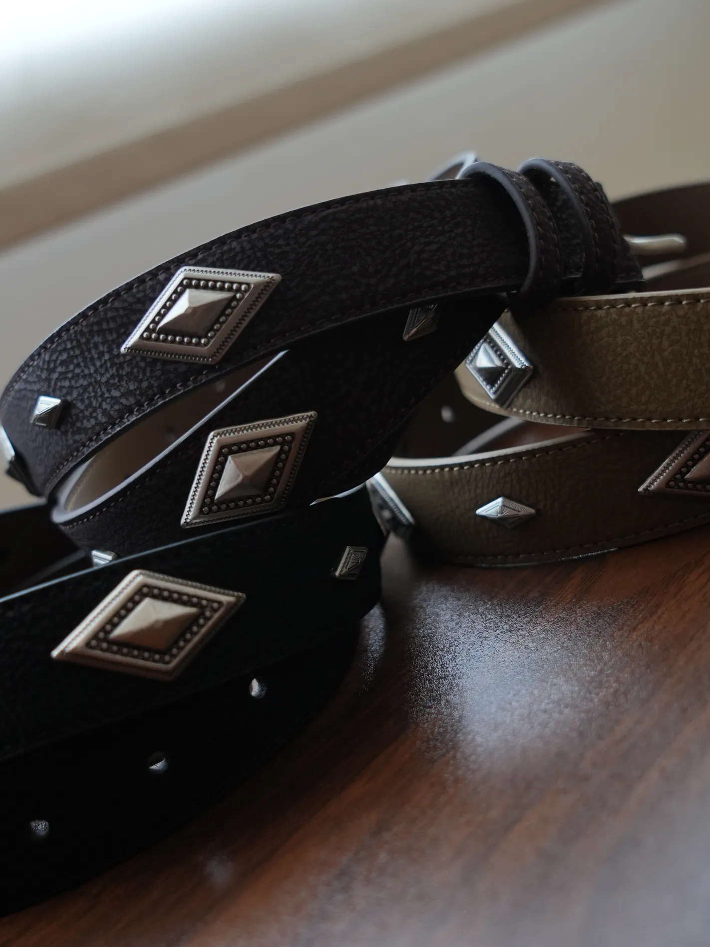(現貨)菱格雕飾牛皮皮帶(咖)