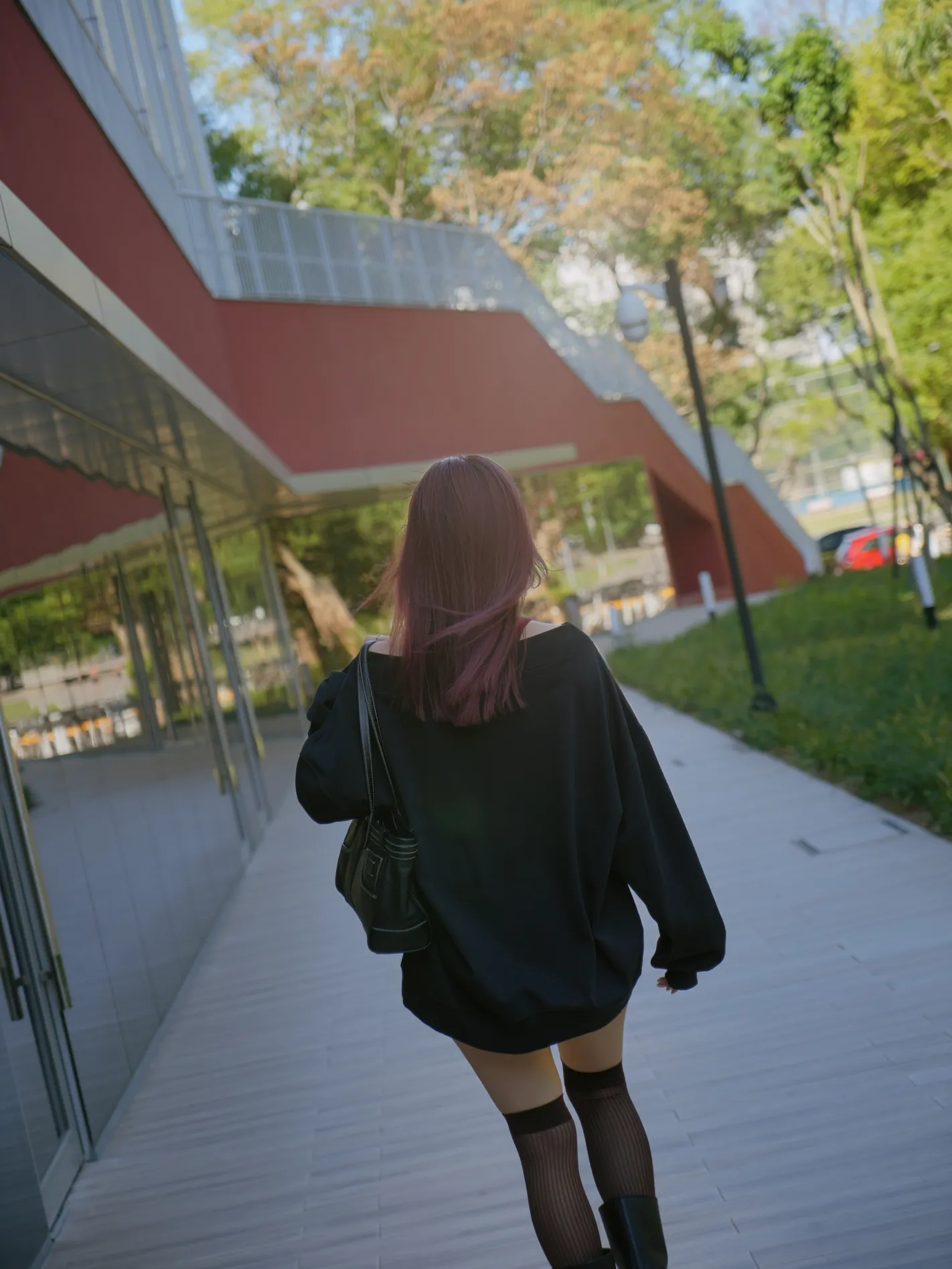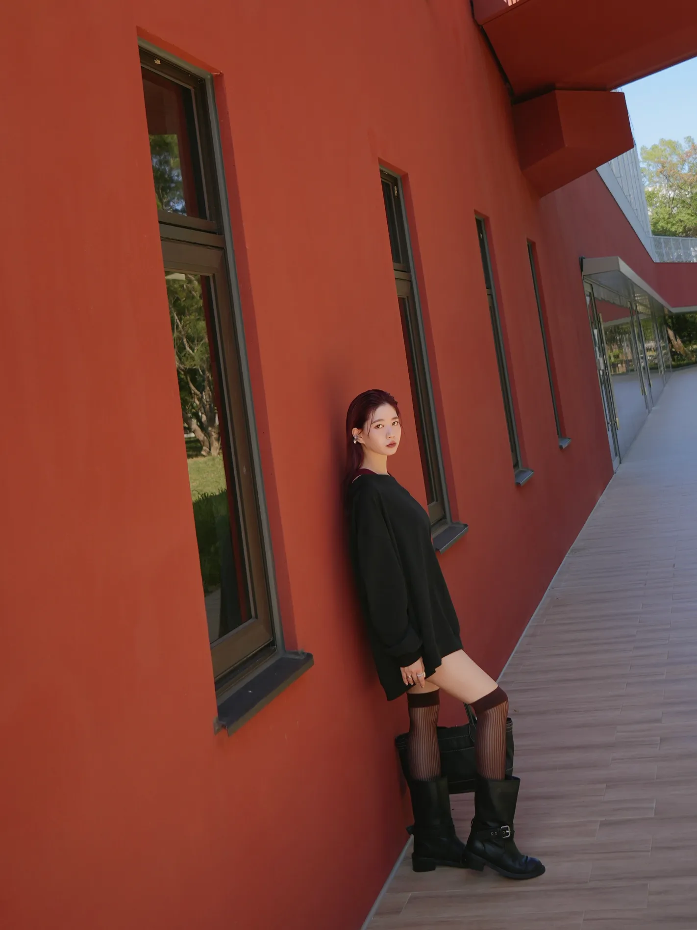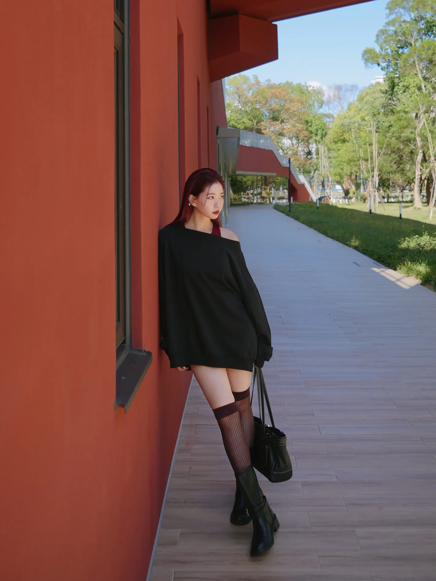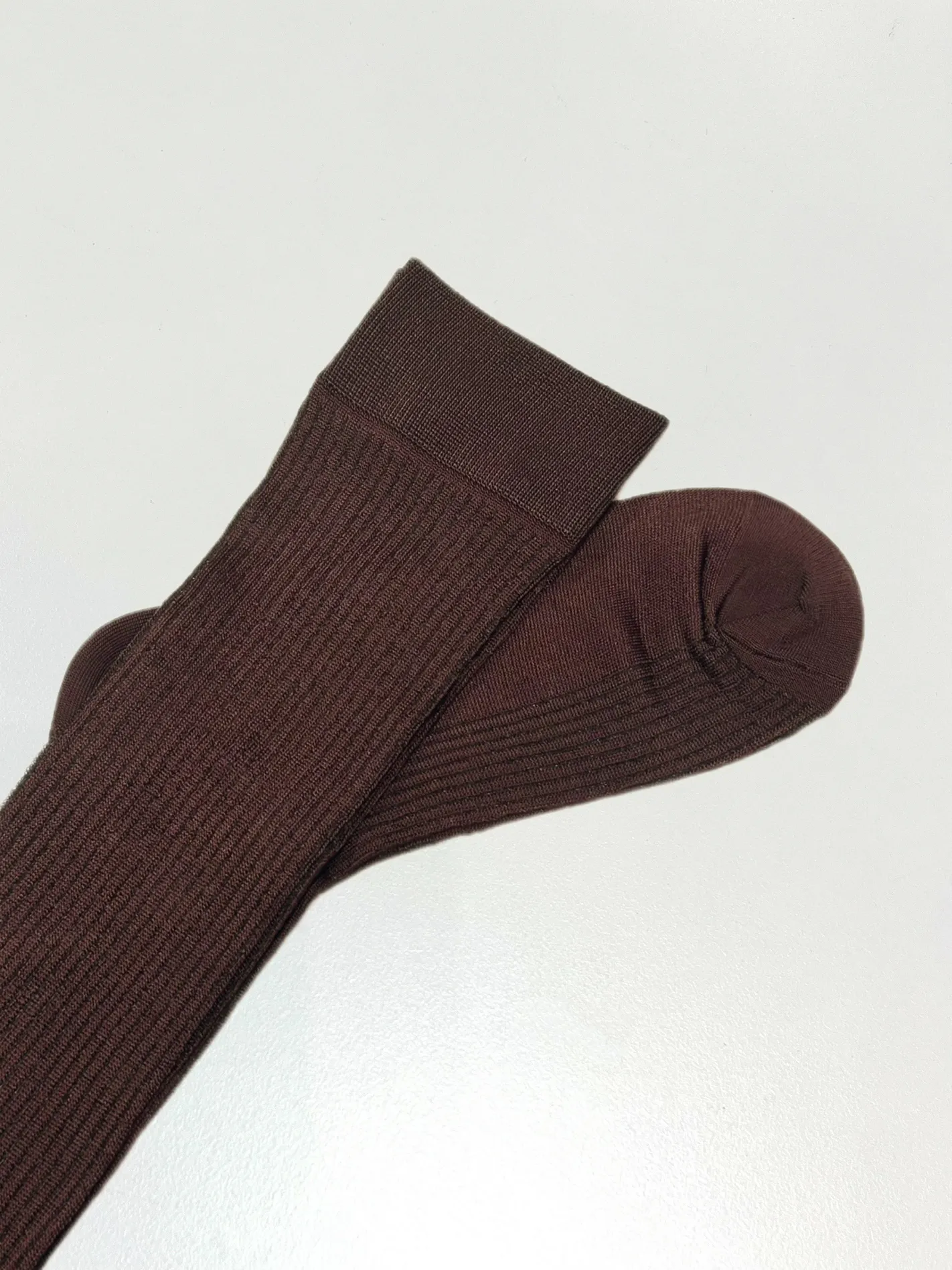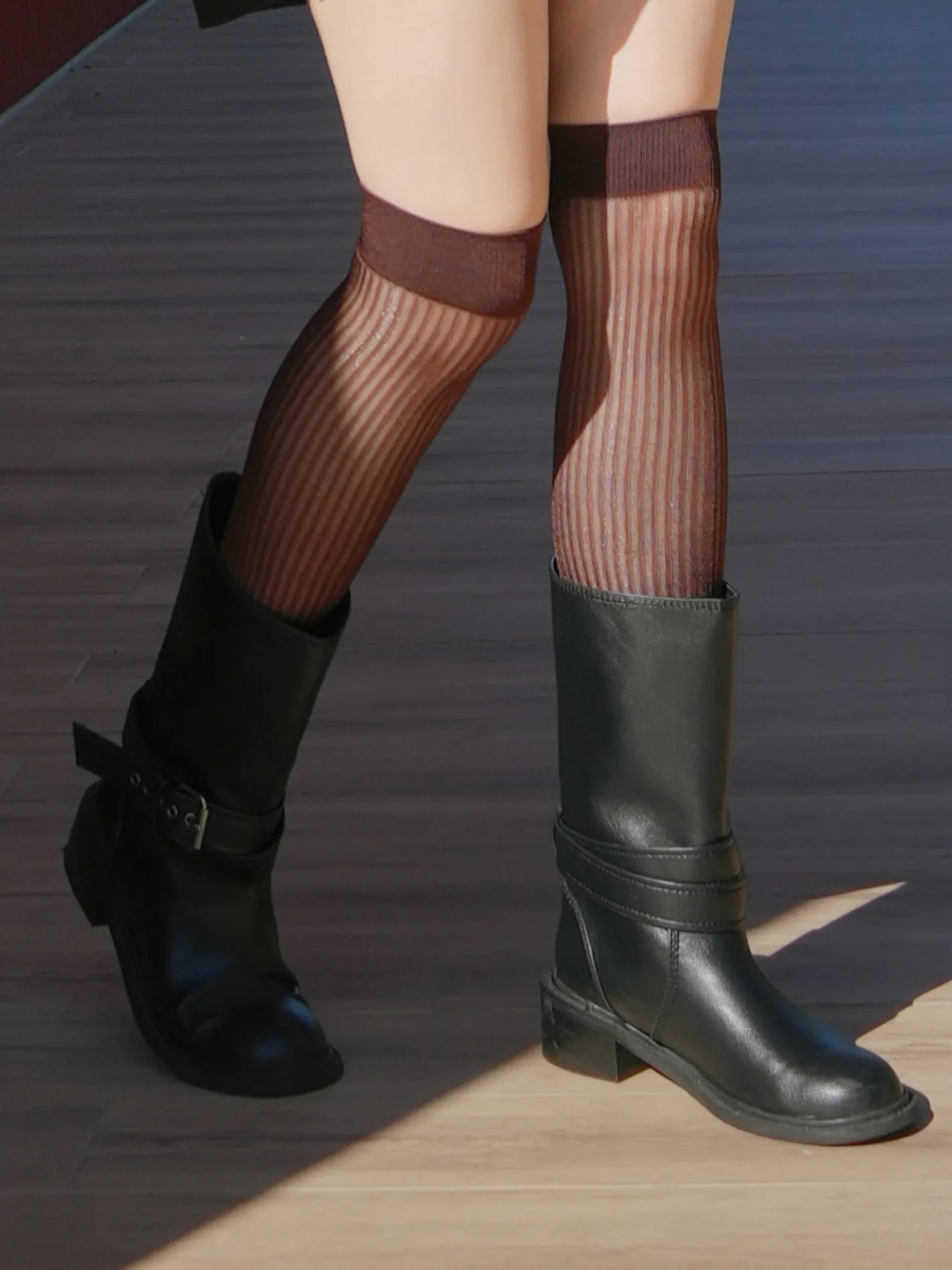 微光羅紋長腿襪(暖棕紅)