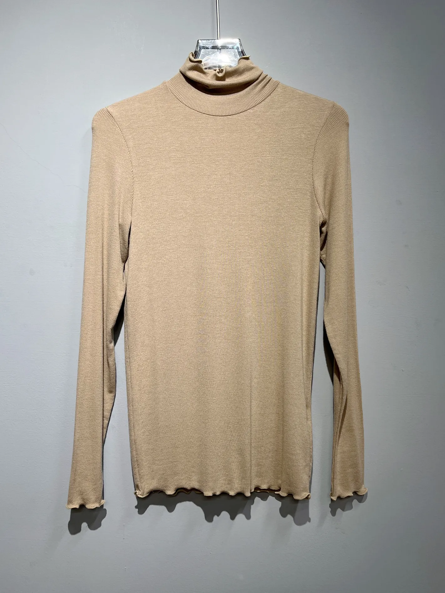 (限量現貨)超柔彈!小花捲高領上衣(米)