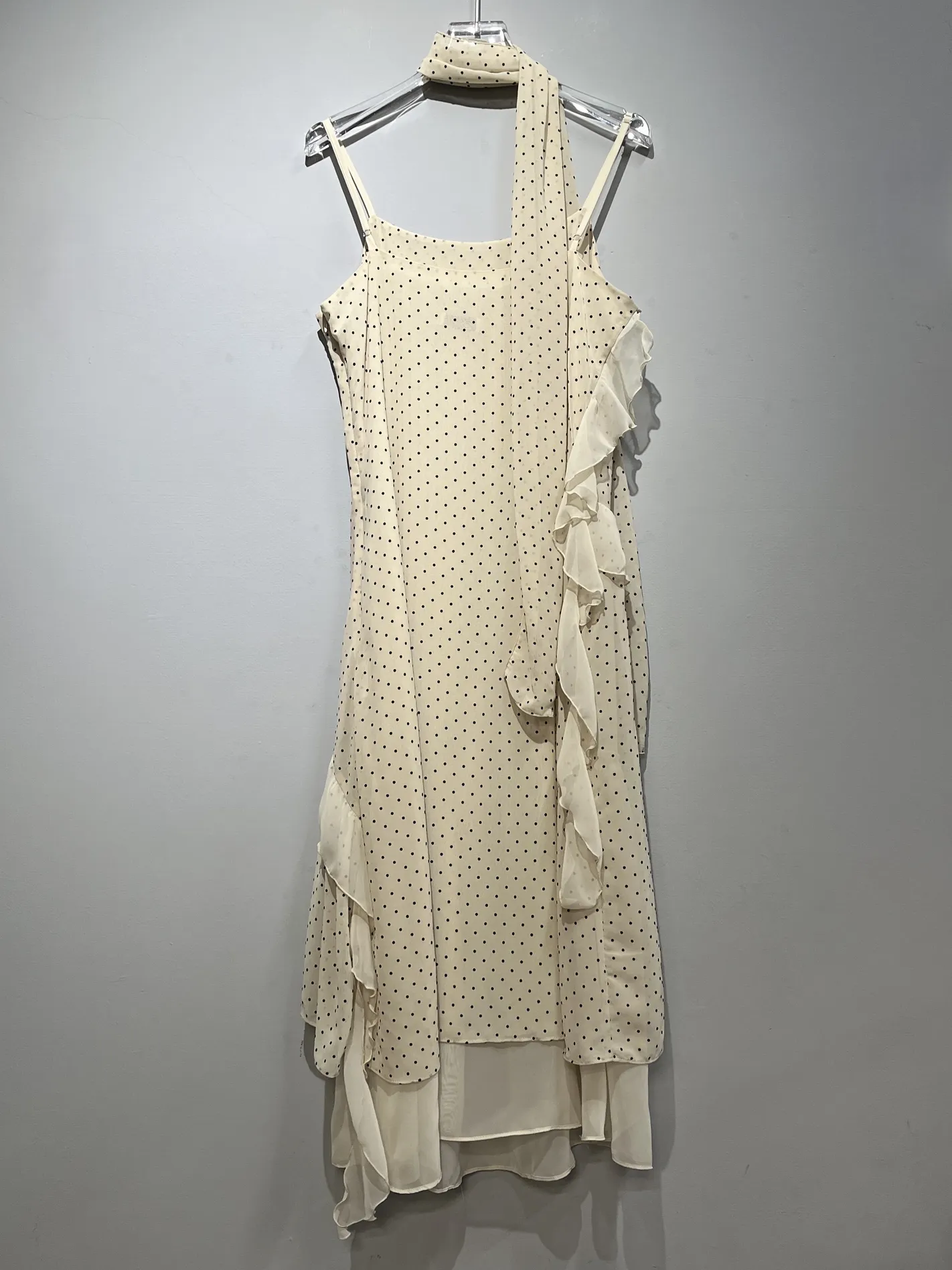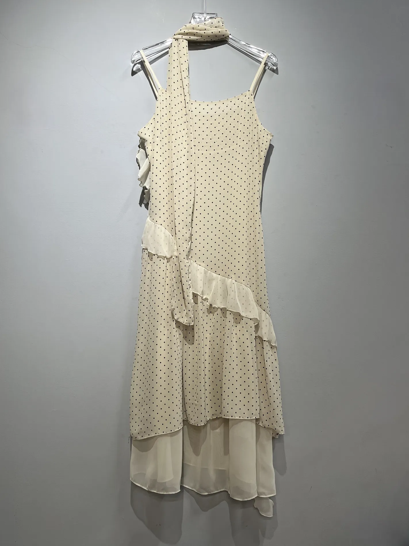 (限量現貨)法式圓點多層次不規則長洋(米白)