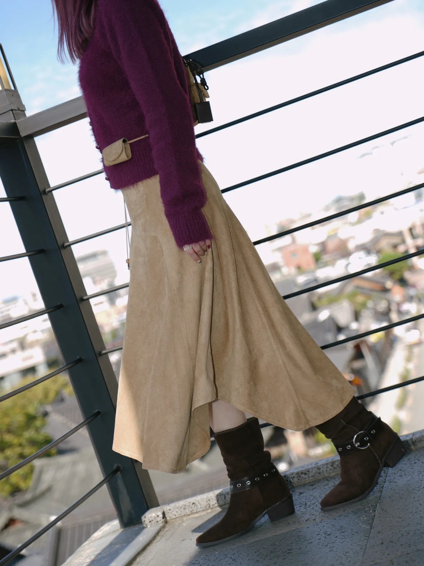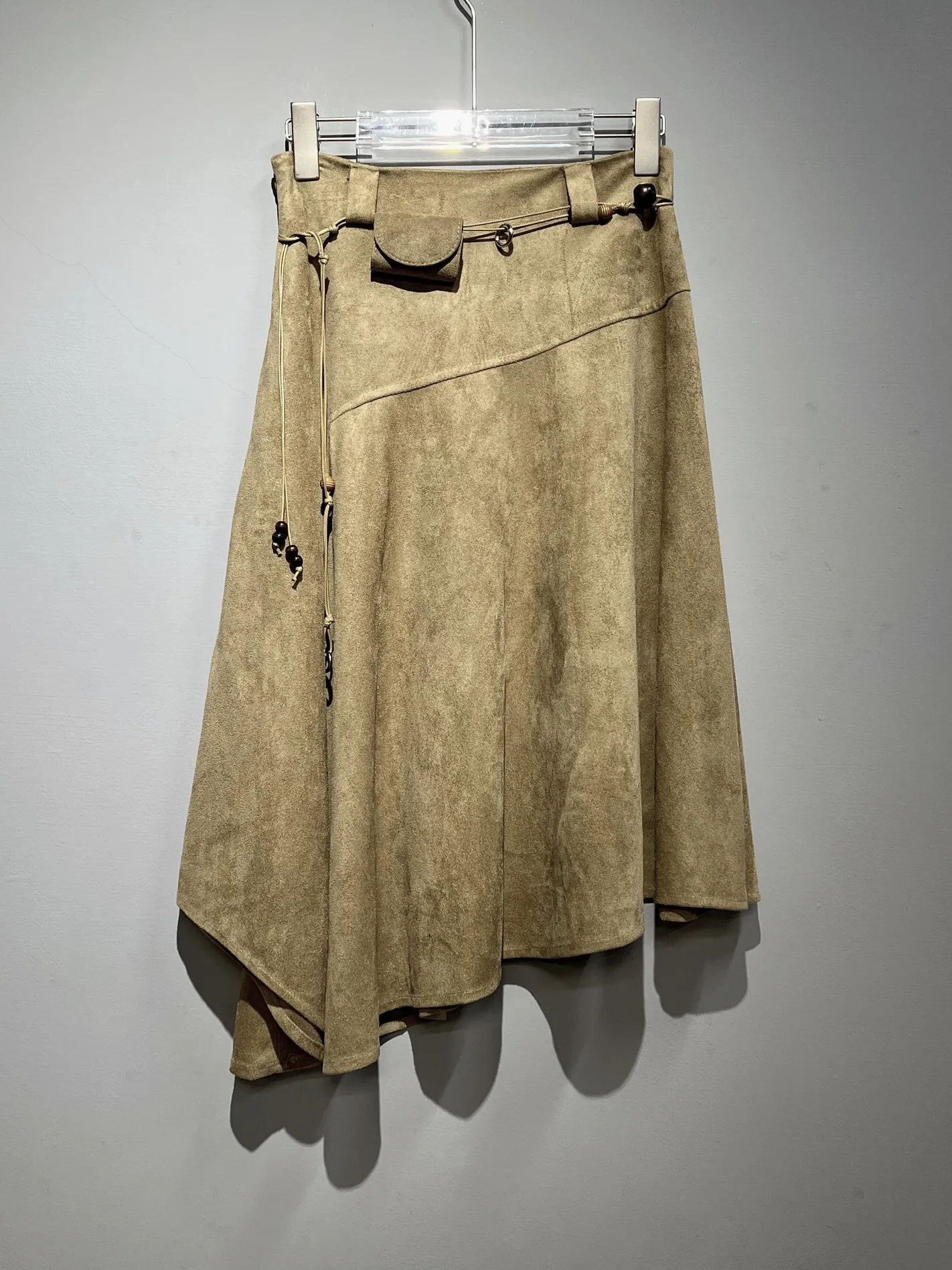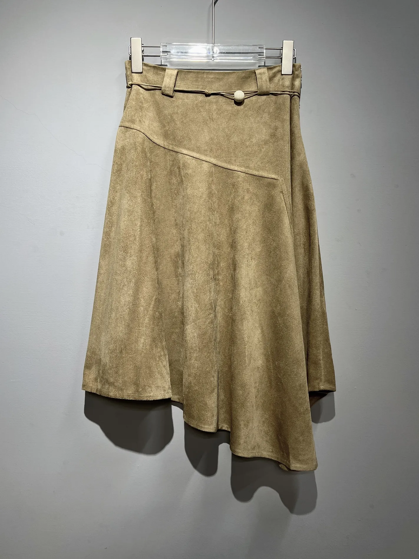 (限量現貨)麂皮感不規則設計長裙(附腰帶)(淺駝)
