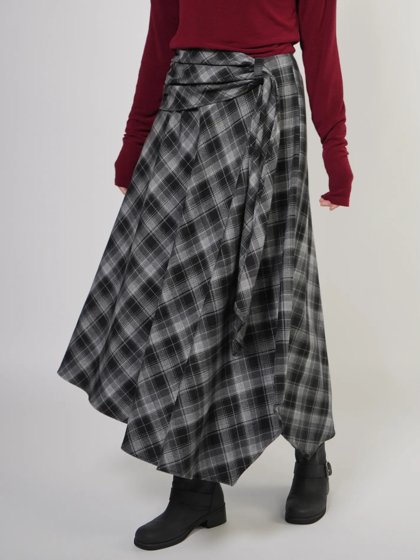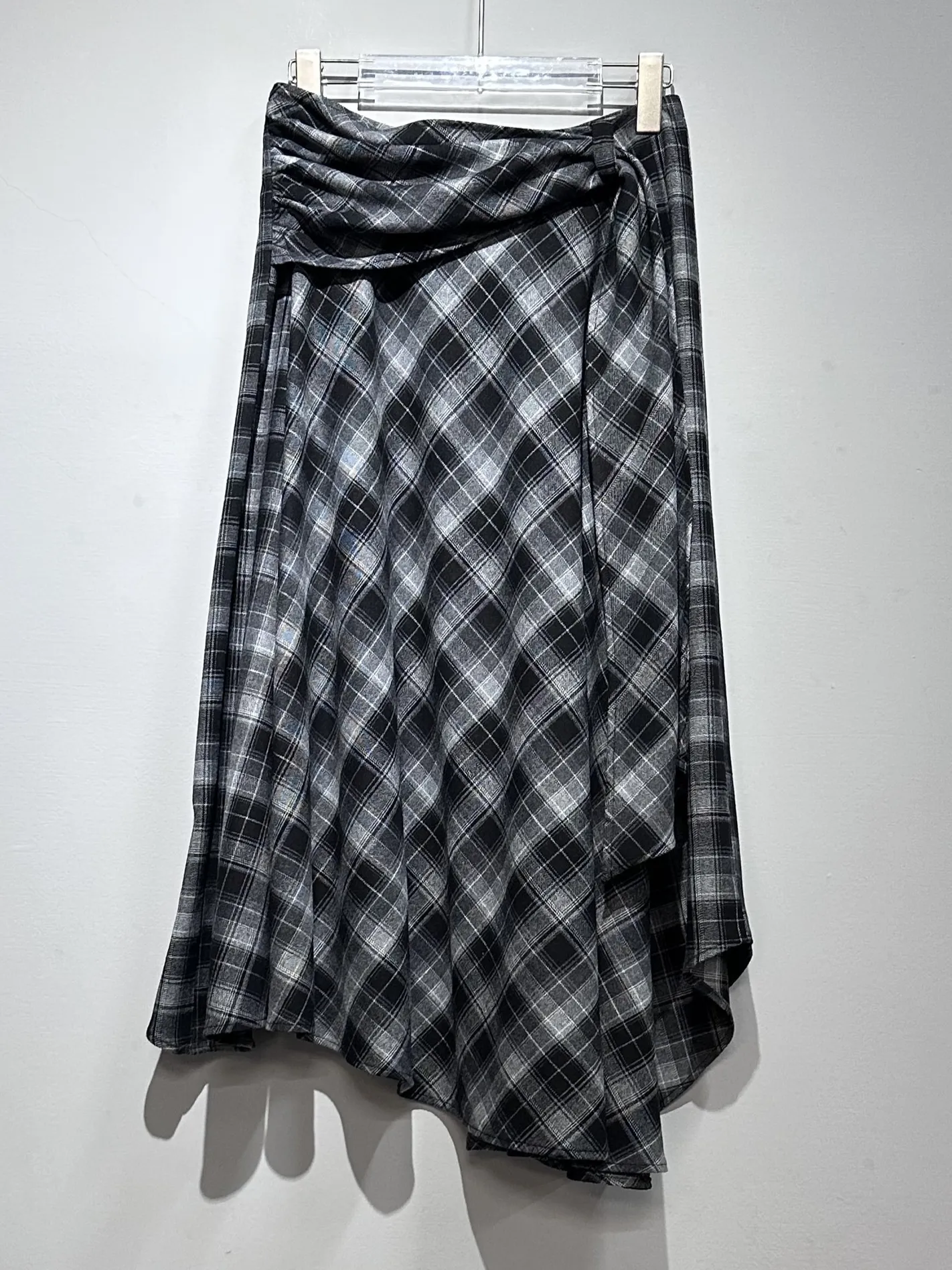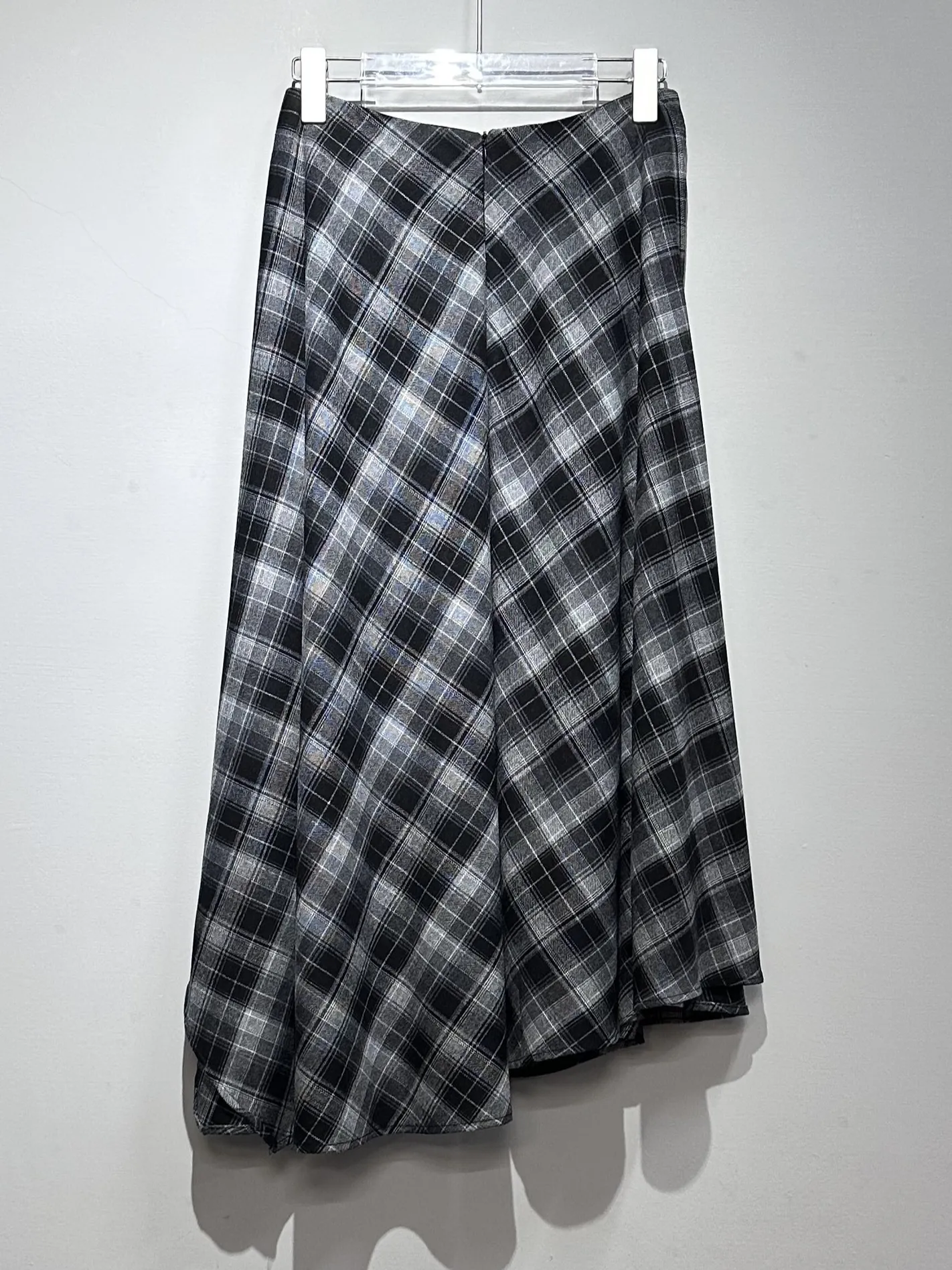 (現貨)綁腰設計格紋不規則長裙(黑)
