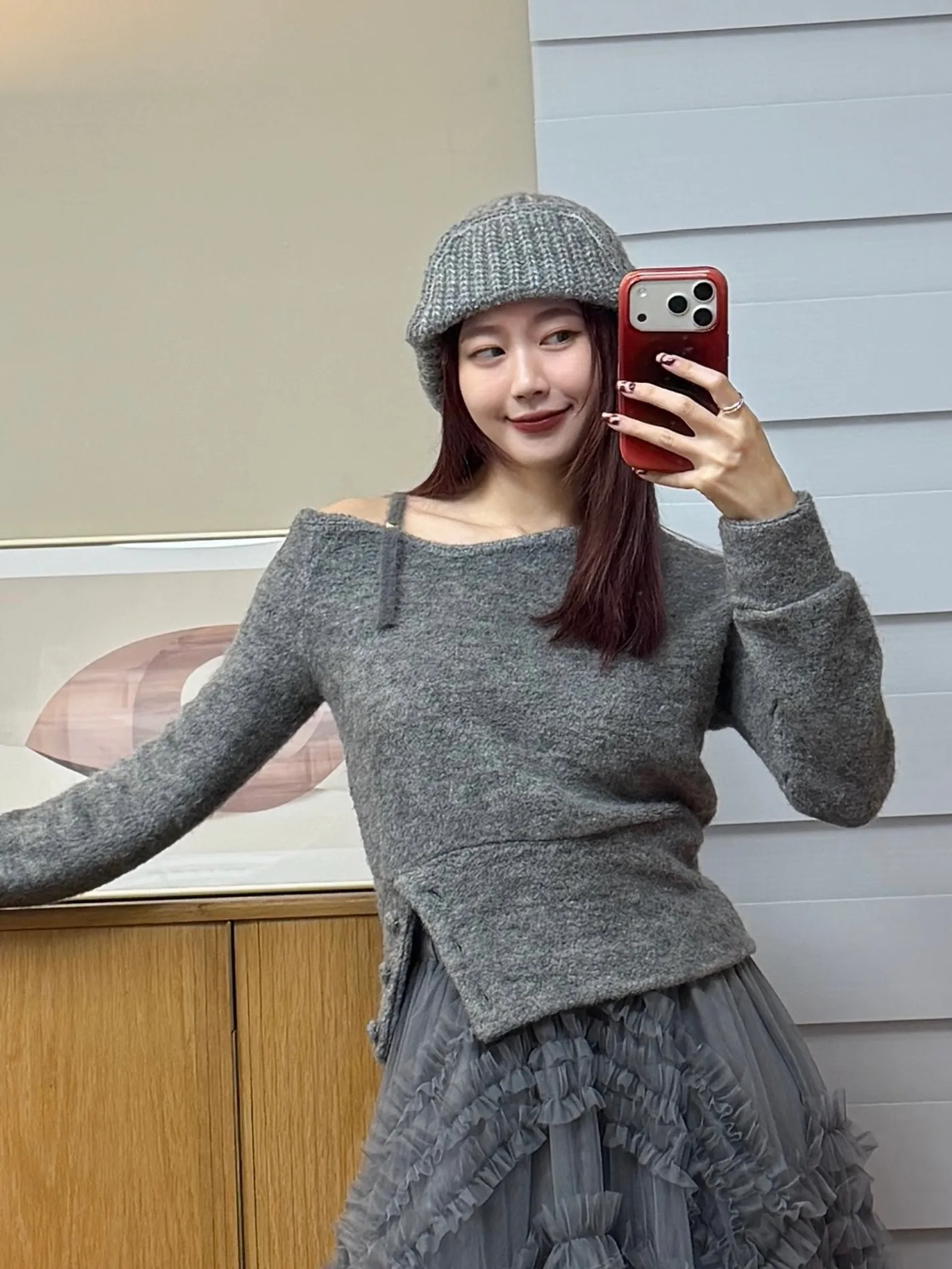 單肩設計造型上衣(灰)