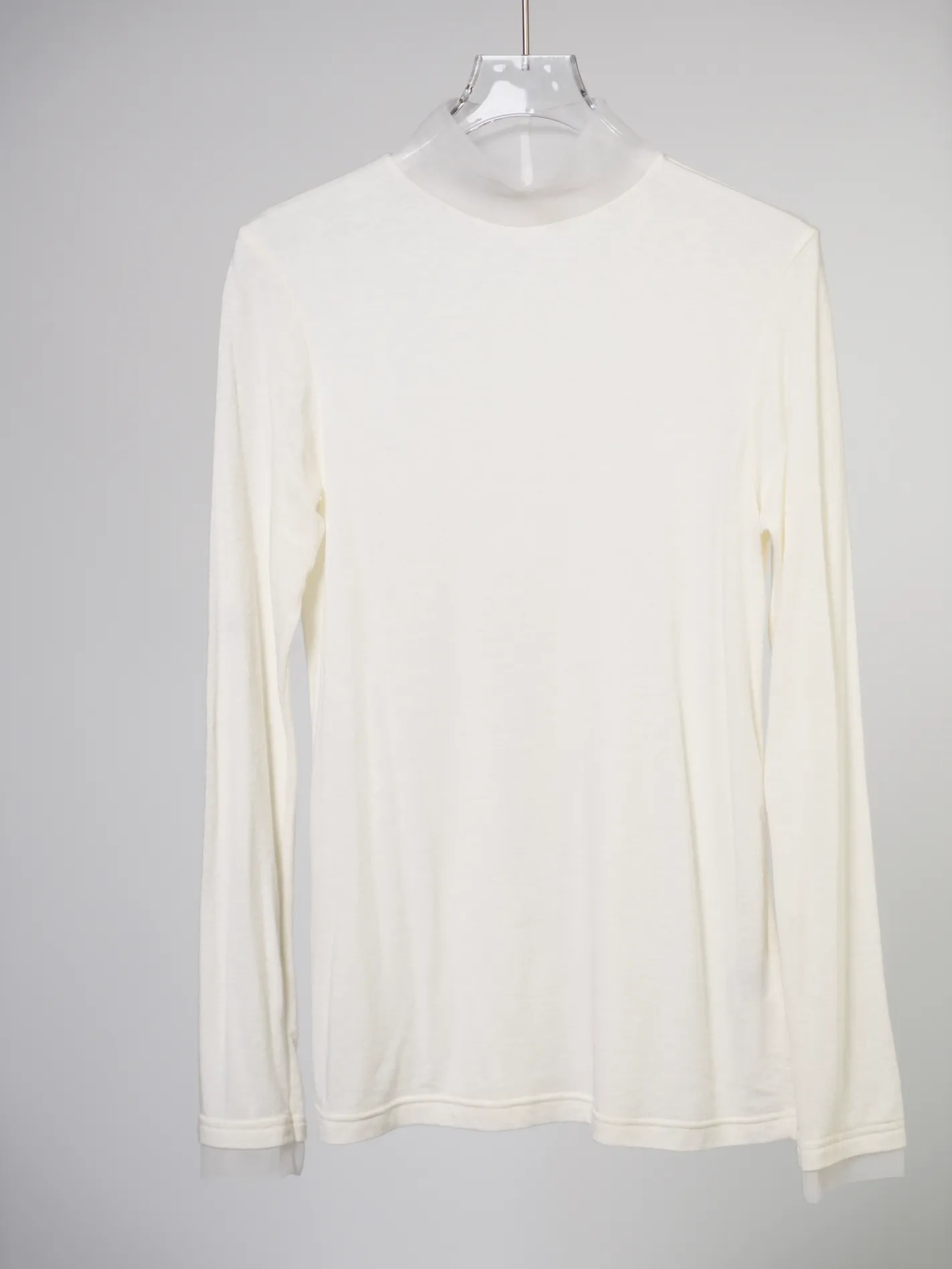 網紗拼接設計高領上衣(白)
