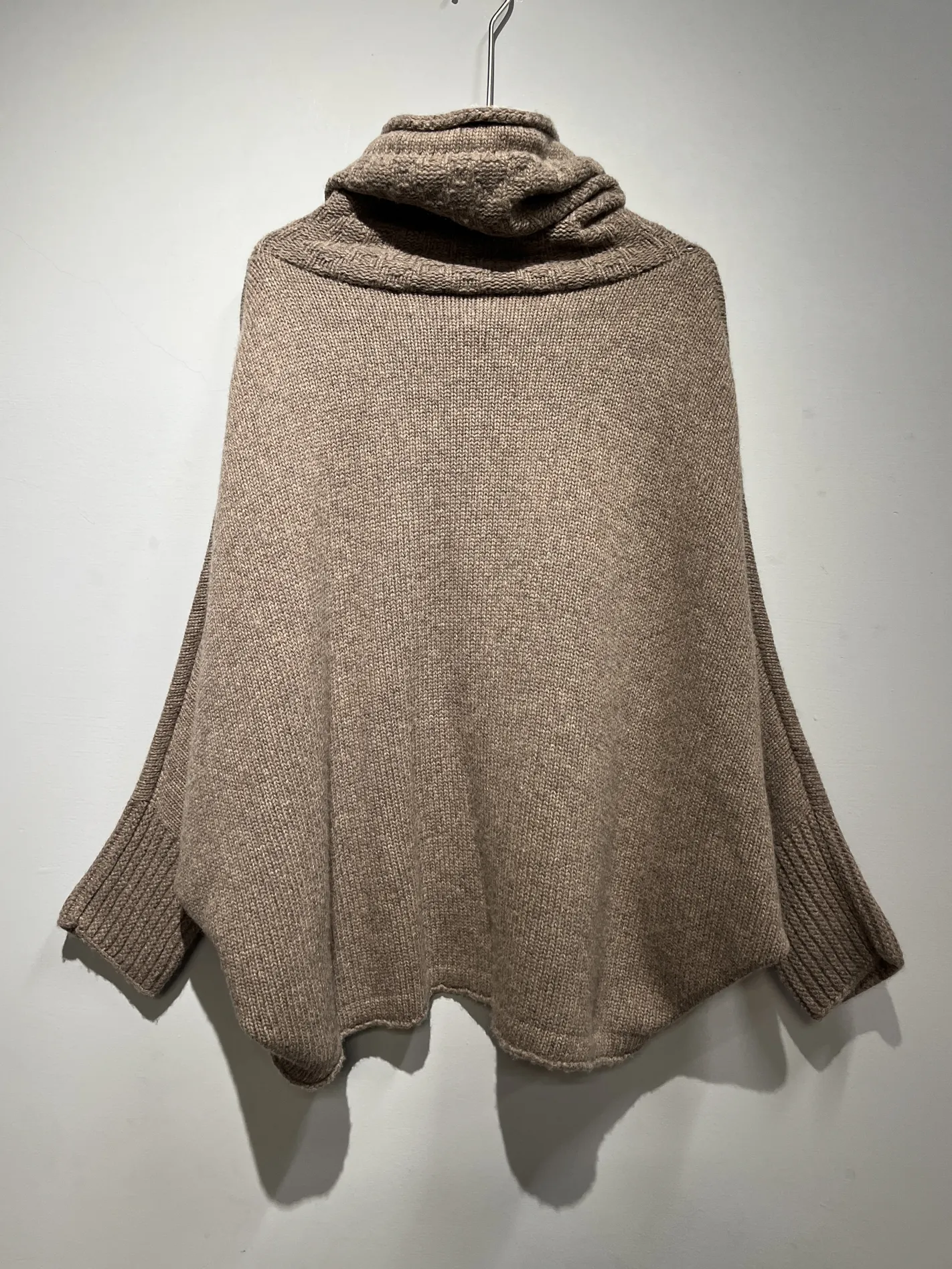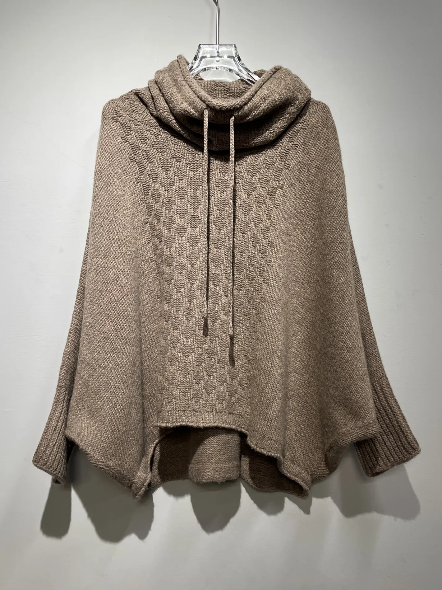 美麗諾羊毛織紋斗篷上衣(棕)
