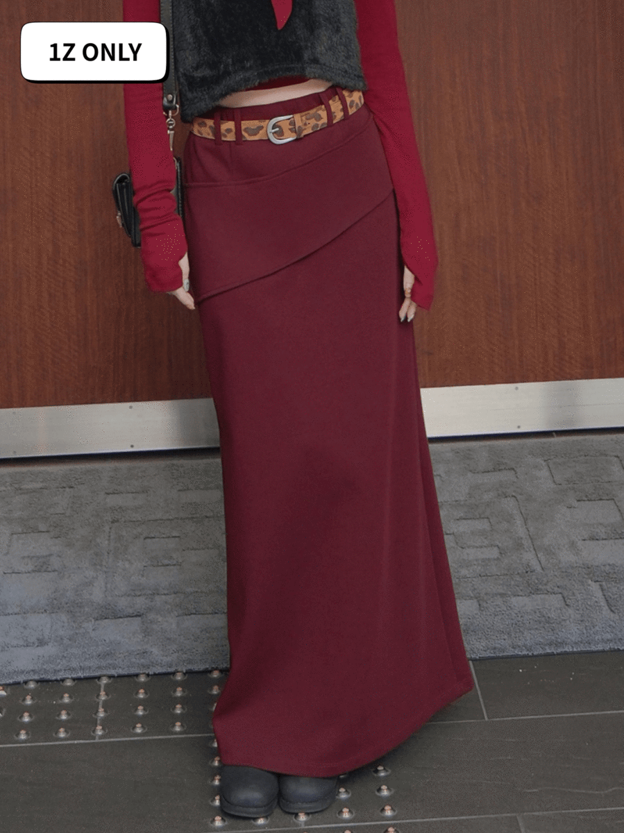 (現貨)超修身!斜切設計感棉質長裙(赫紅)