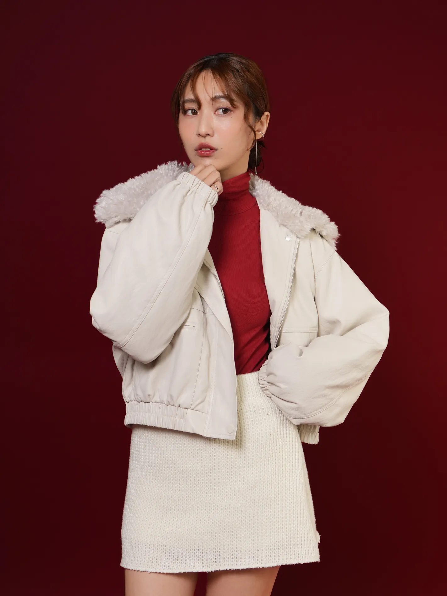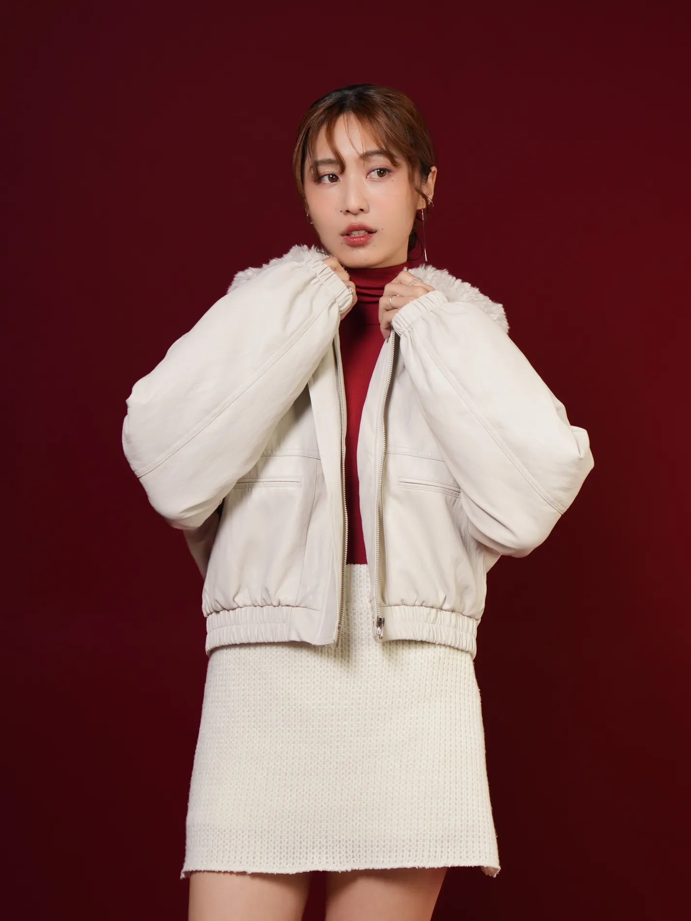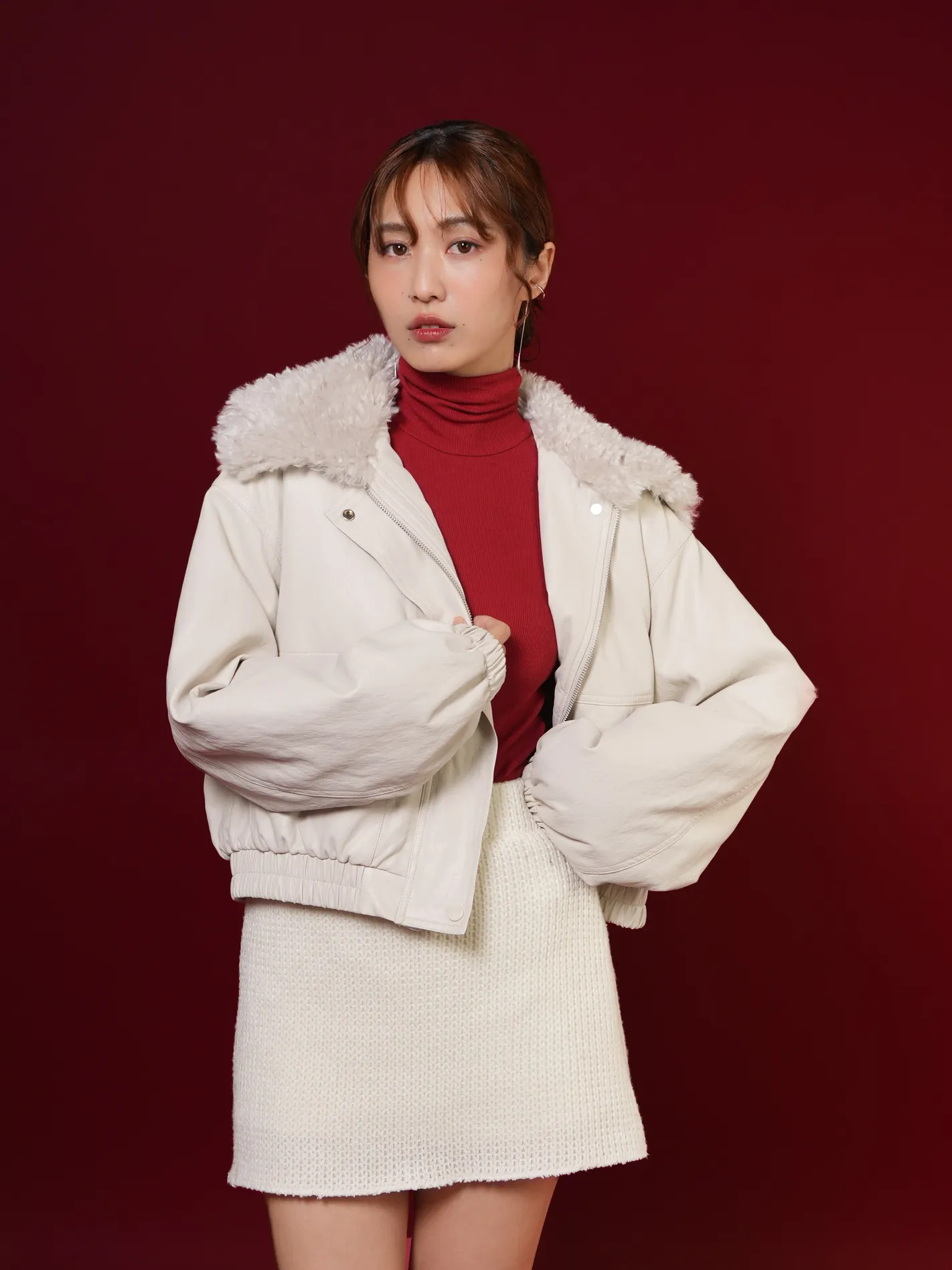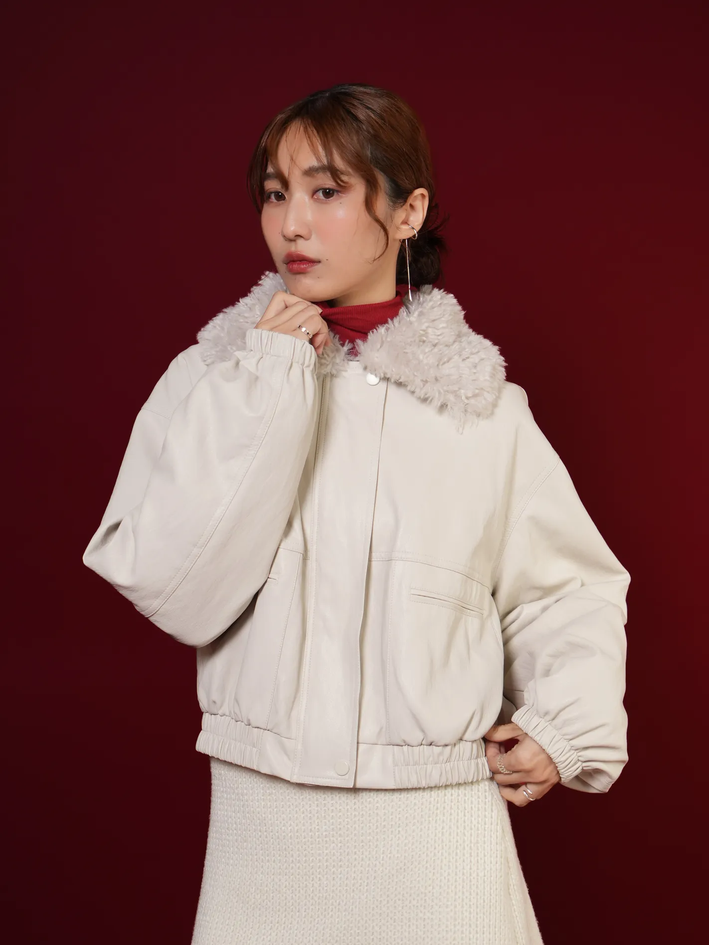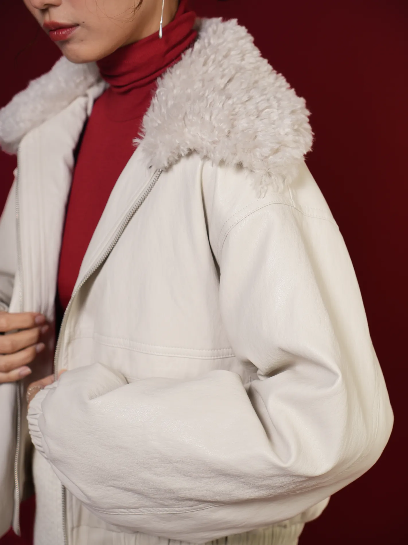 (現貨)極輕柔!毛毛領鋪棉皮外(白)