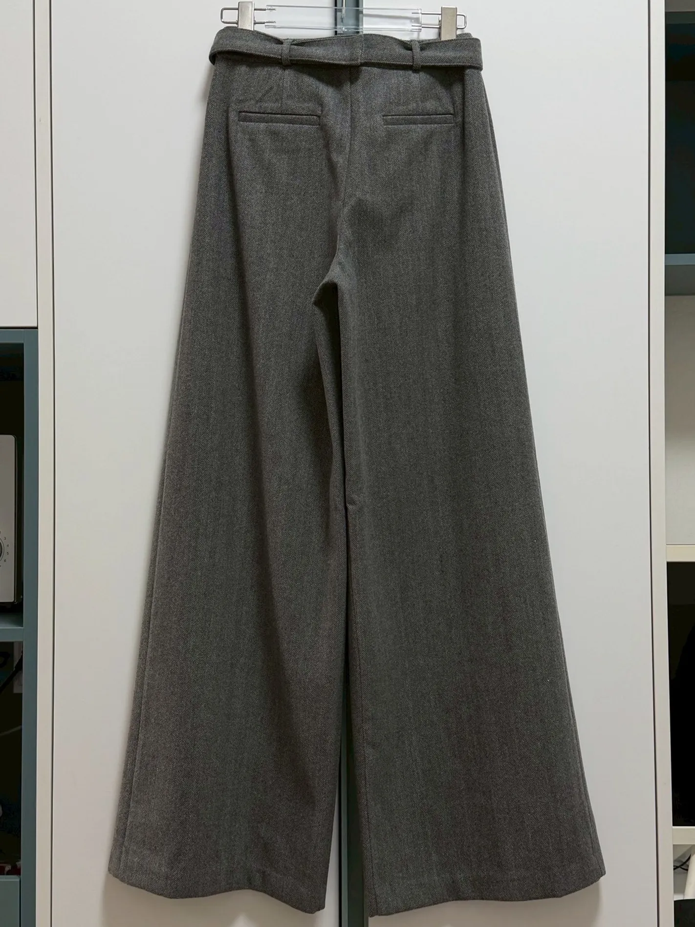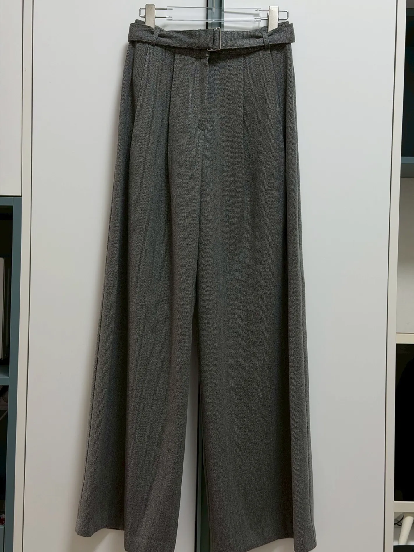 (限量現貨)雙褶修身長腿西褲(附腰帶)