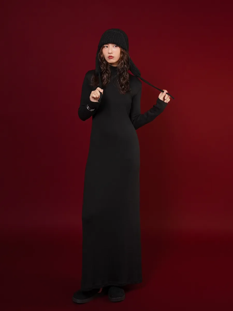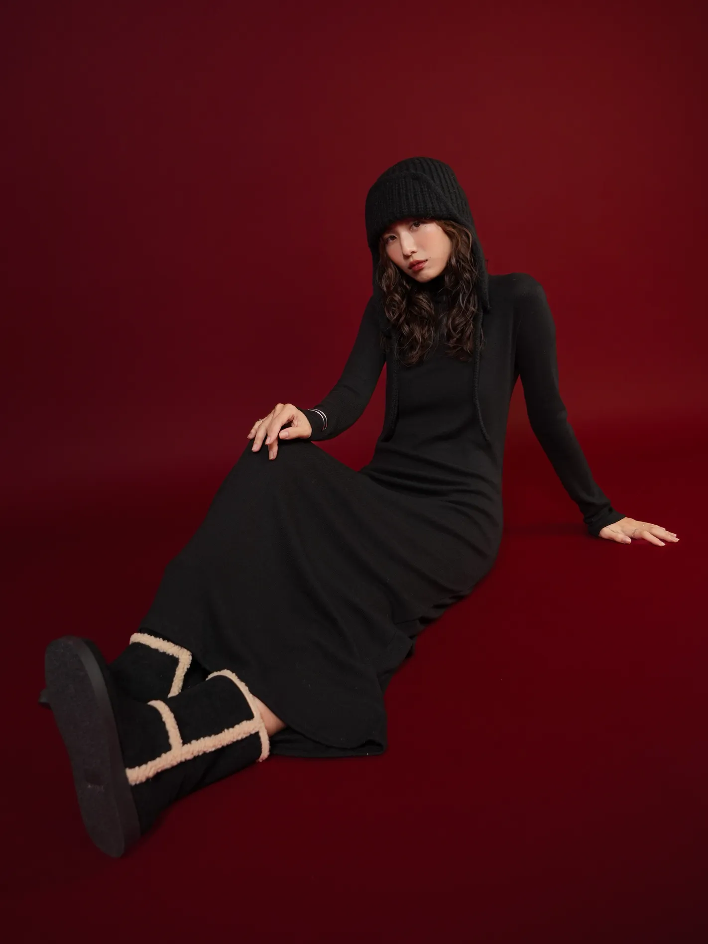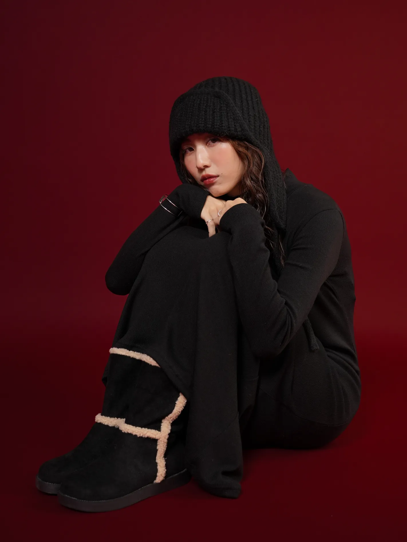 麂皮感拼絨雪靴(黑)