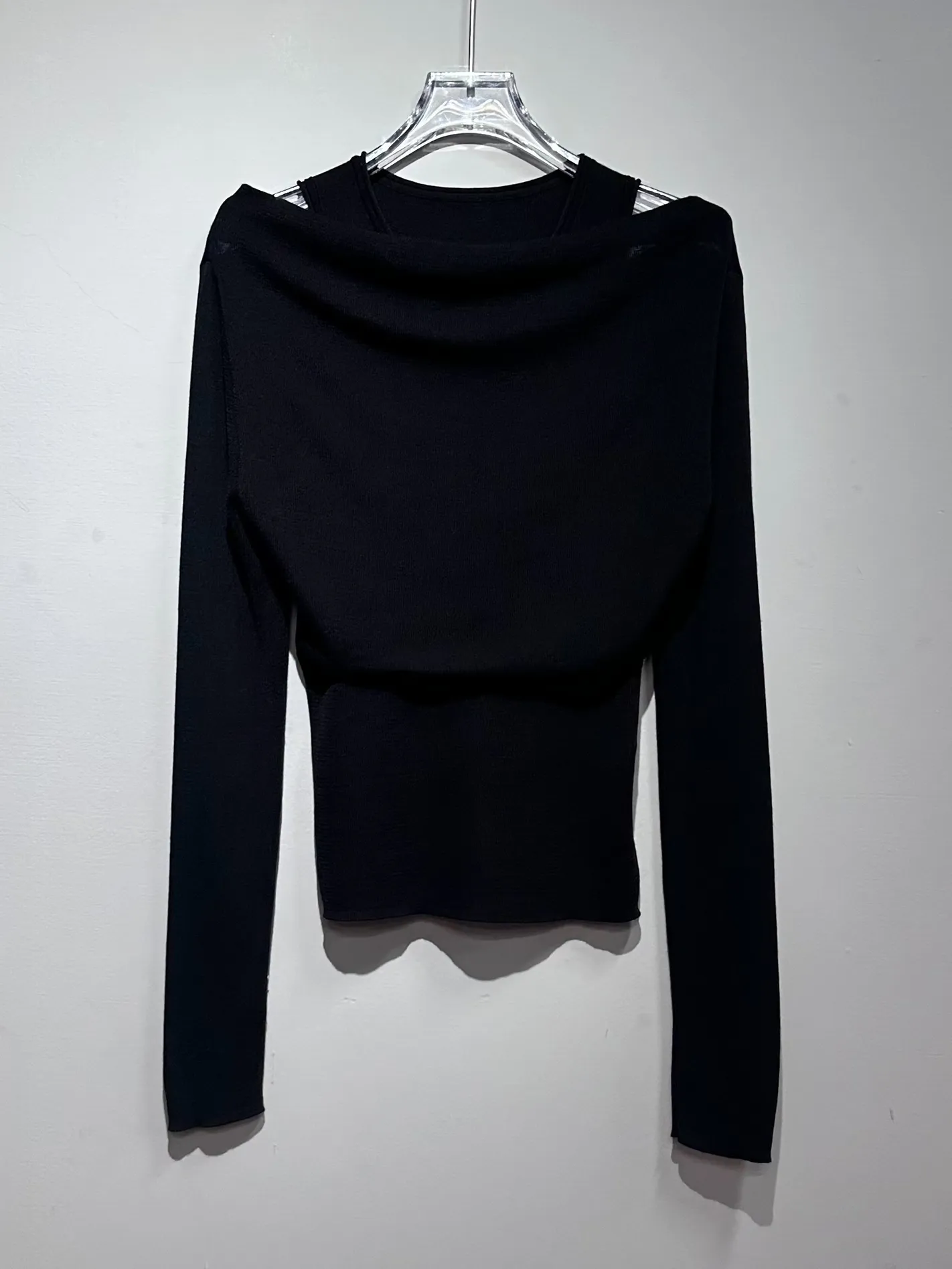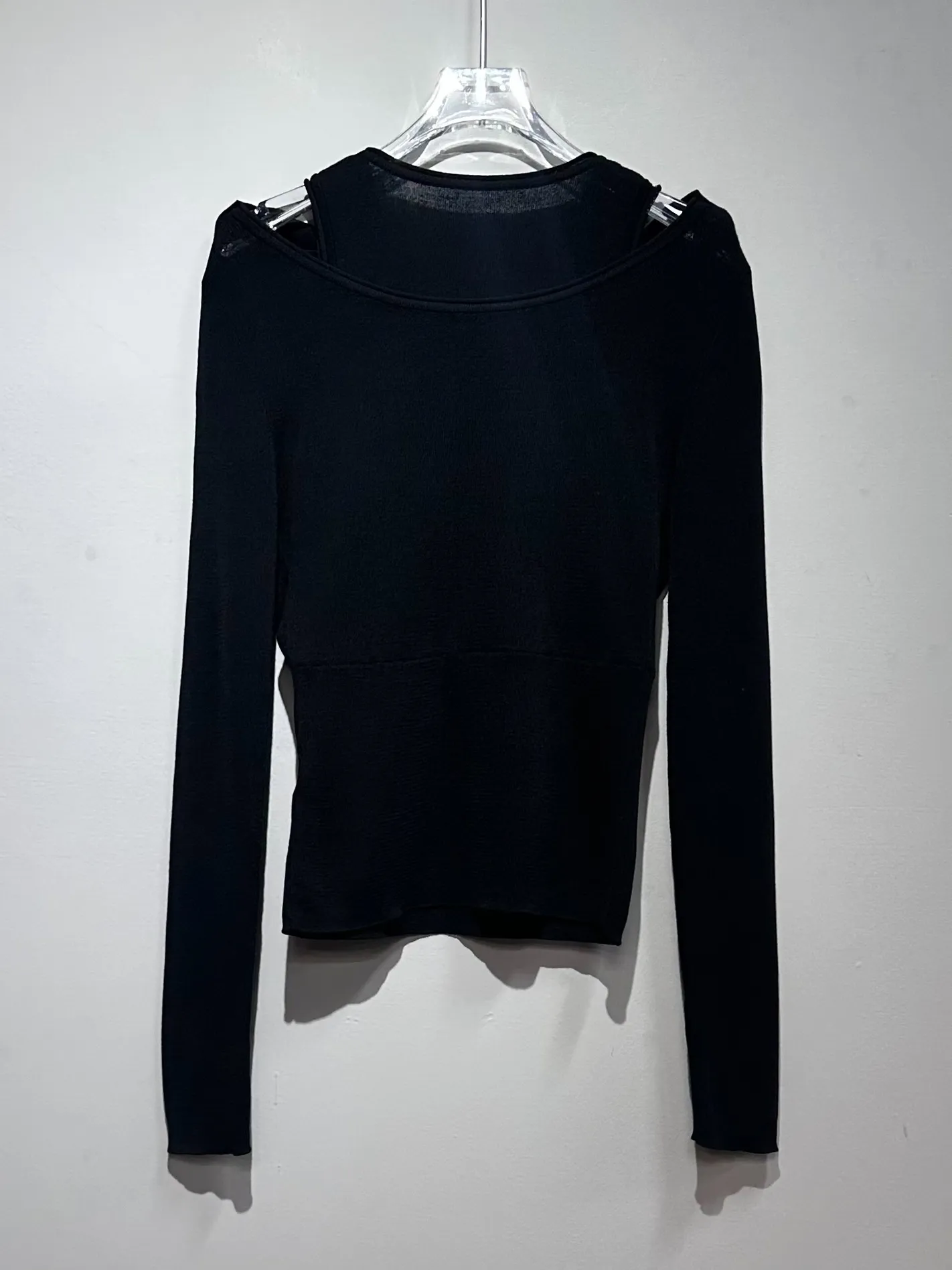 極輕柔!天絲霧感假兩件露肩上衣(黑)