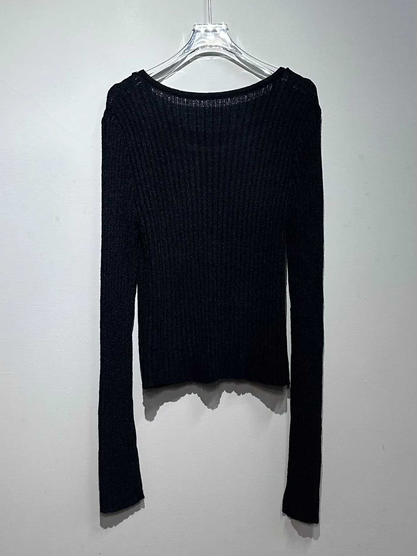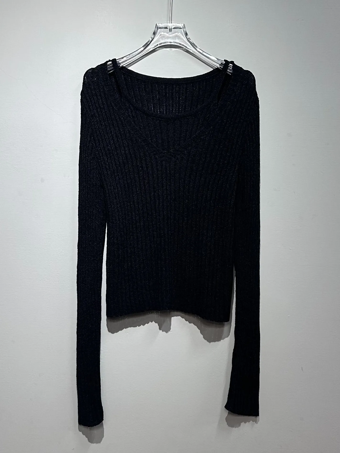 微露肩假兩件針織上衣(黑)