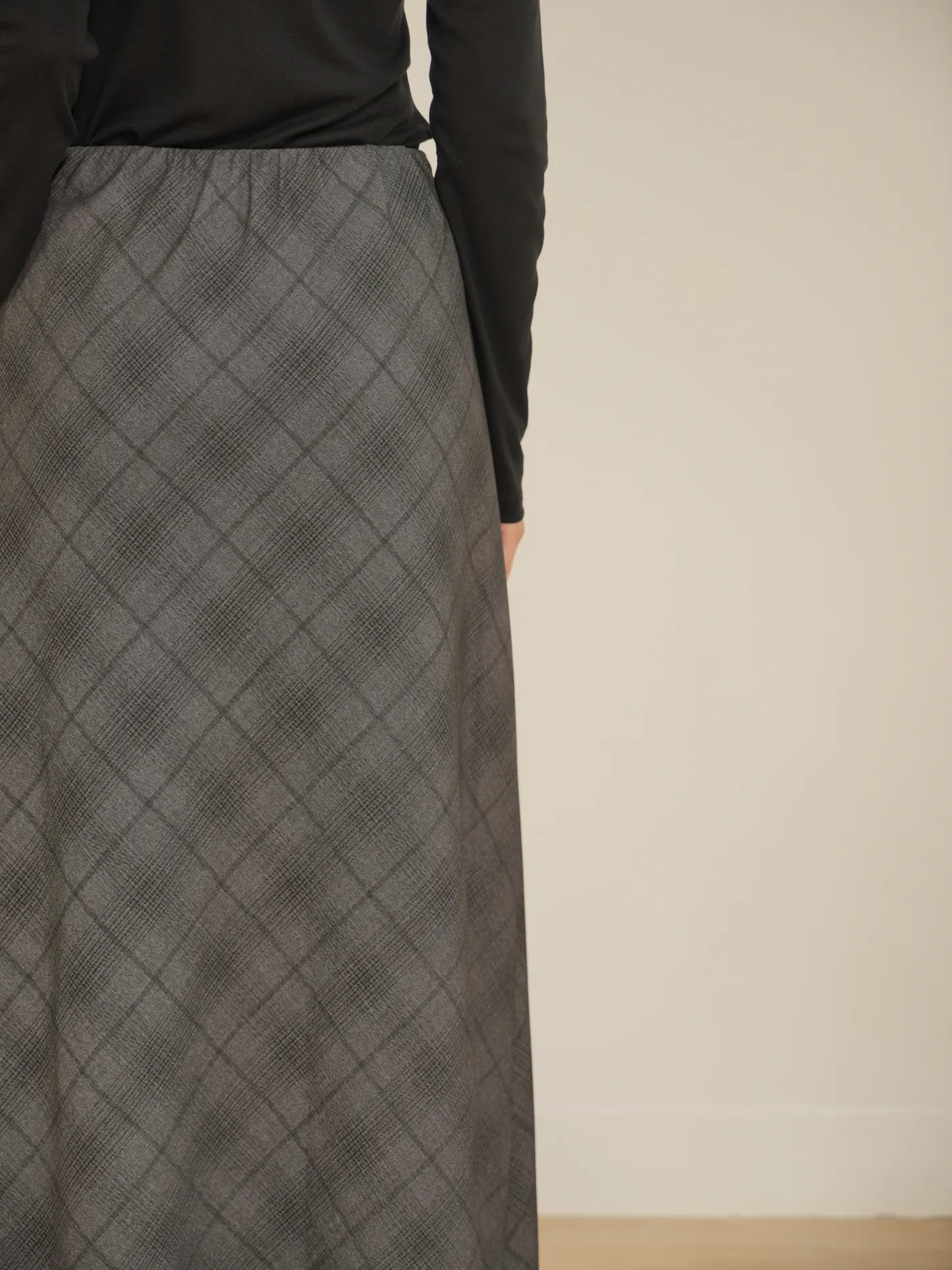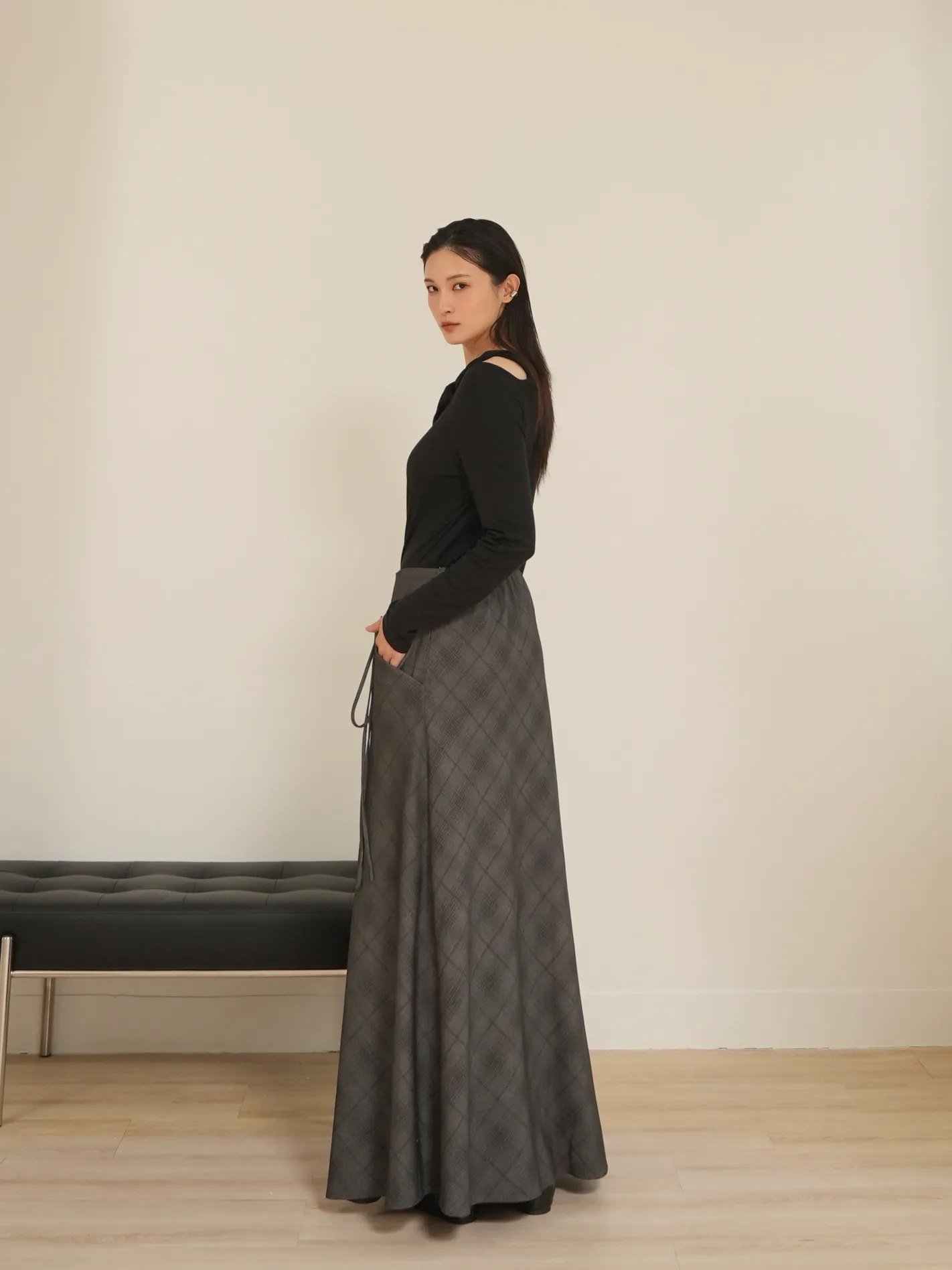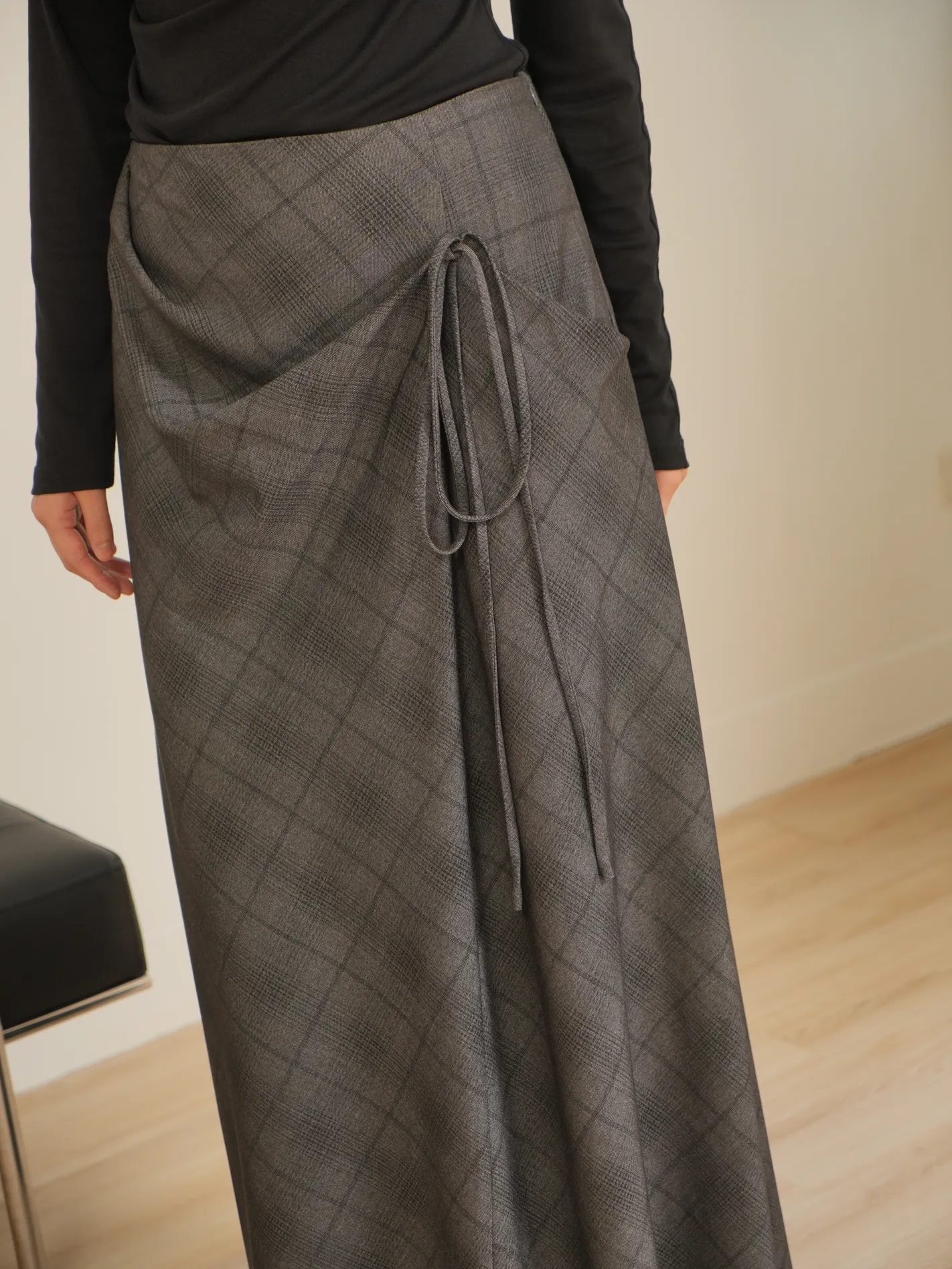 (現貨)格紋神裙!拋袋錯格繫繩長裙(深灰)