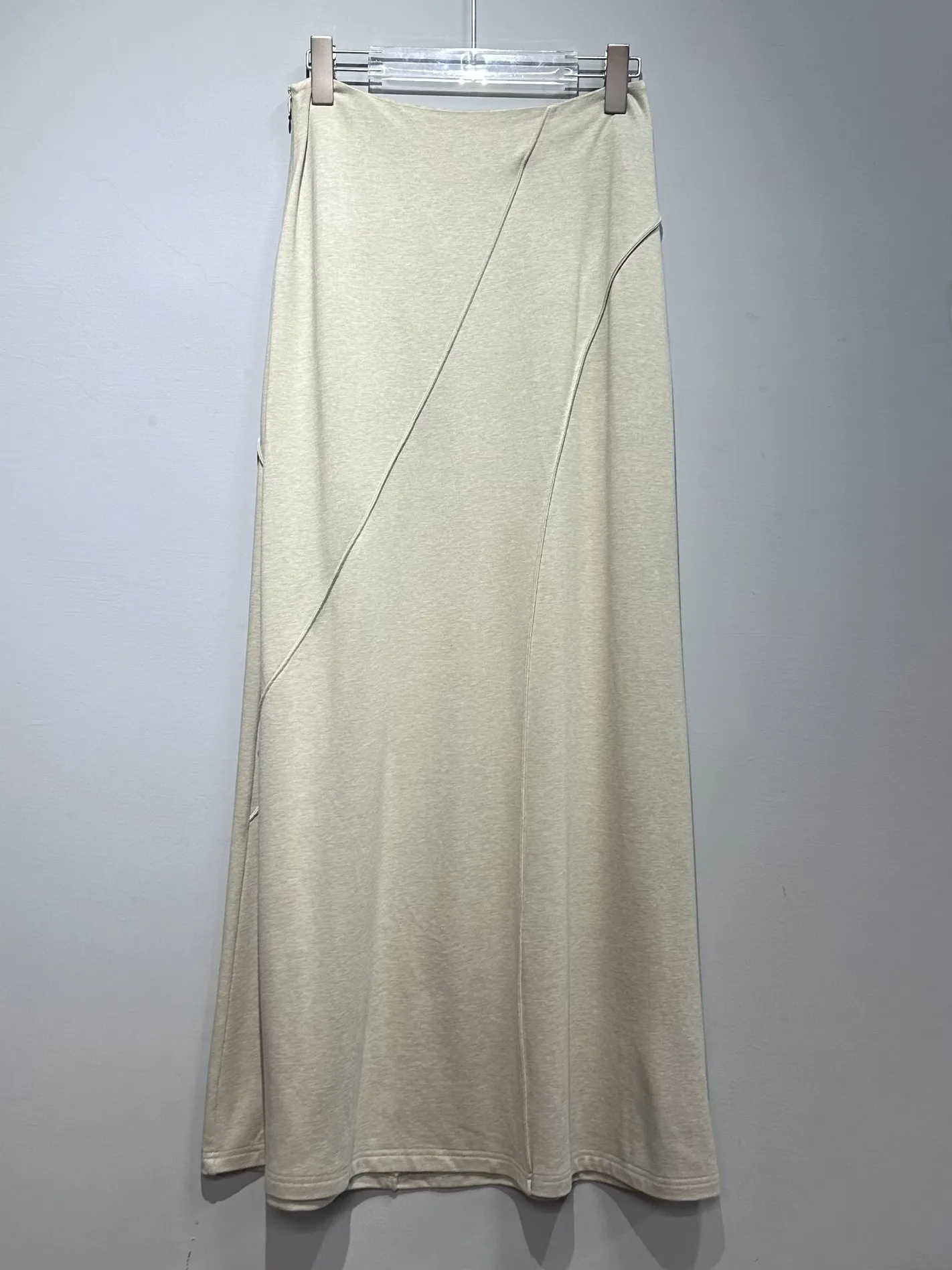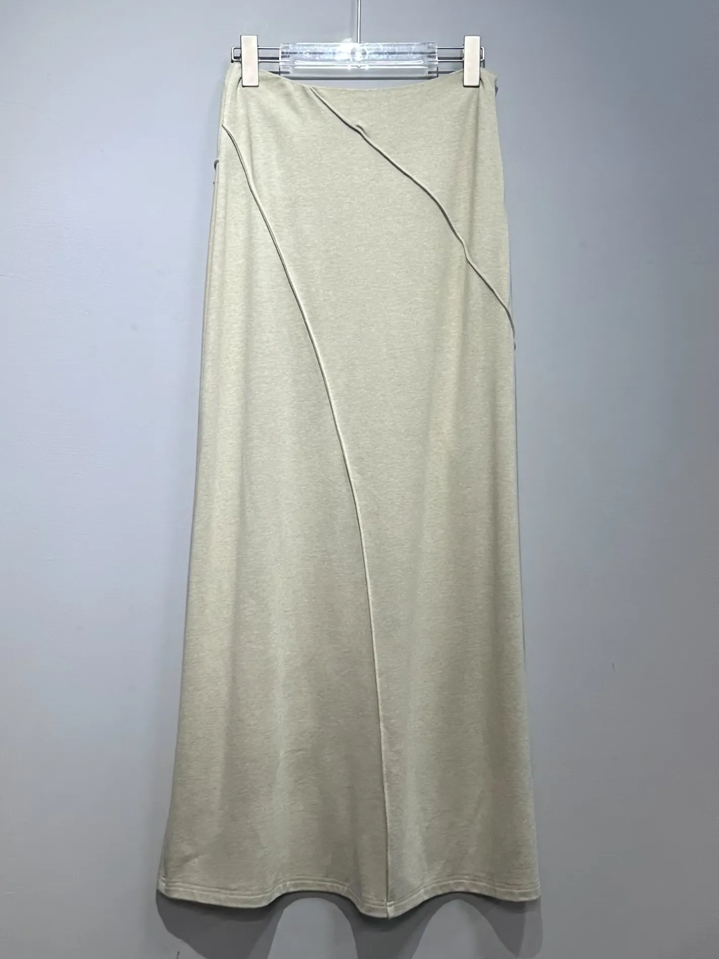 立體修身外縫線不對稱長裙(鼠尾草綠)
