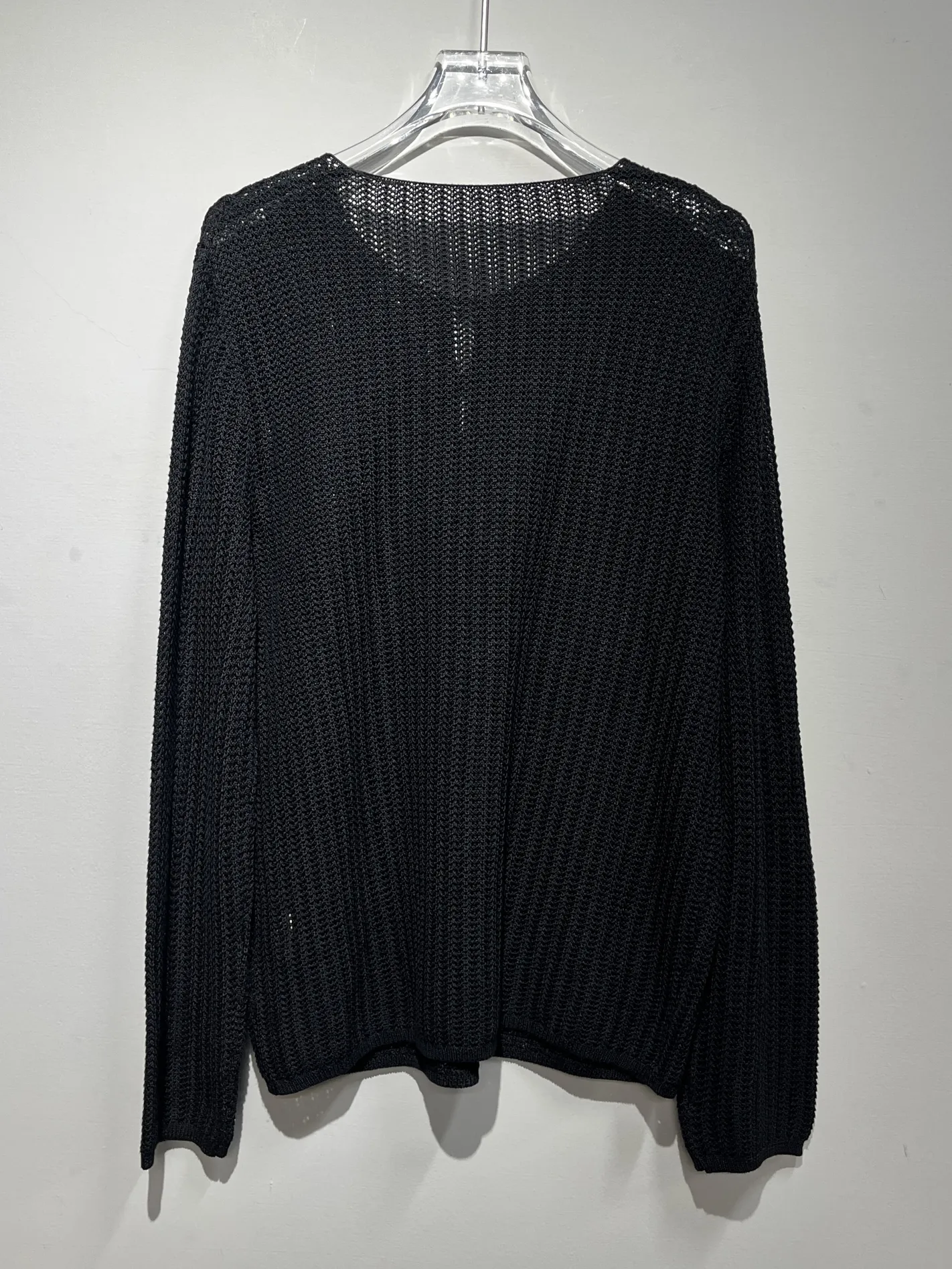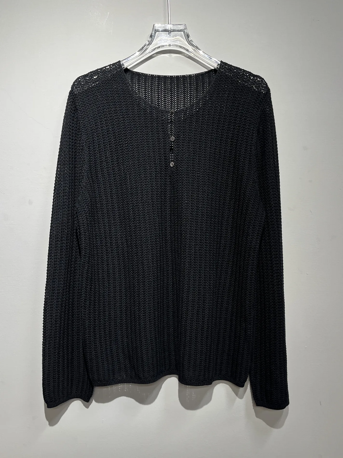 滴型三釦透編針織上衣(黑)