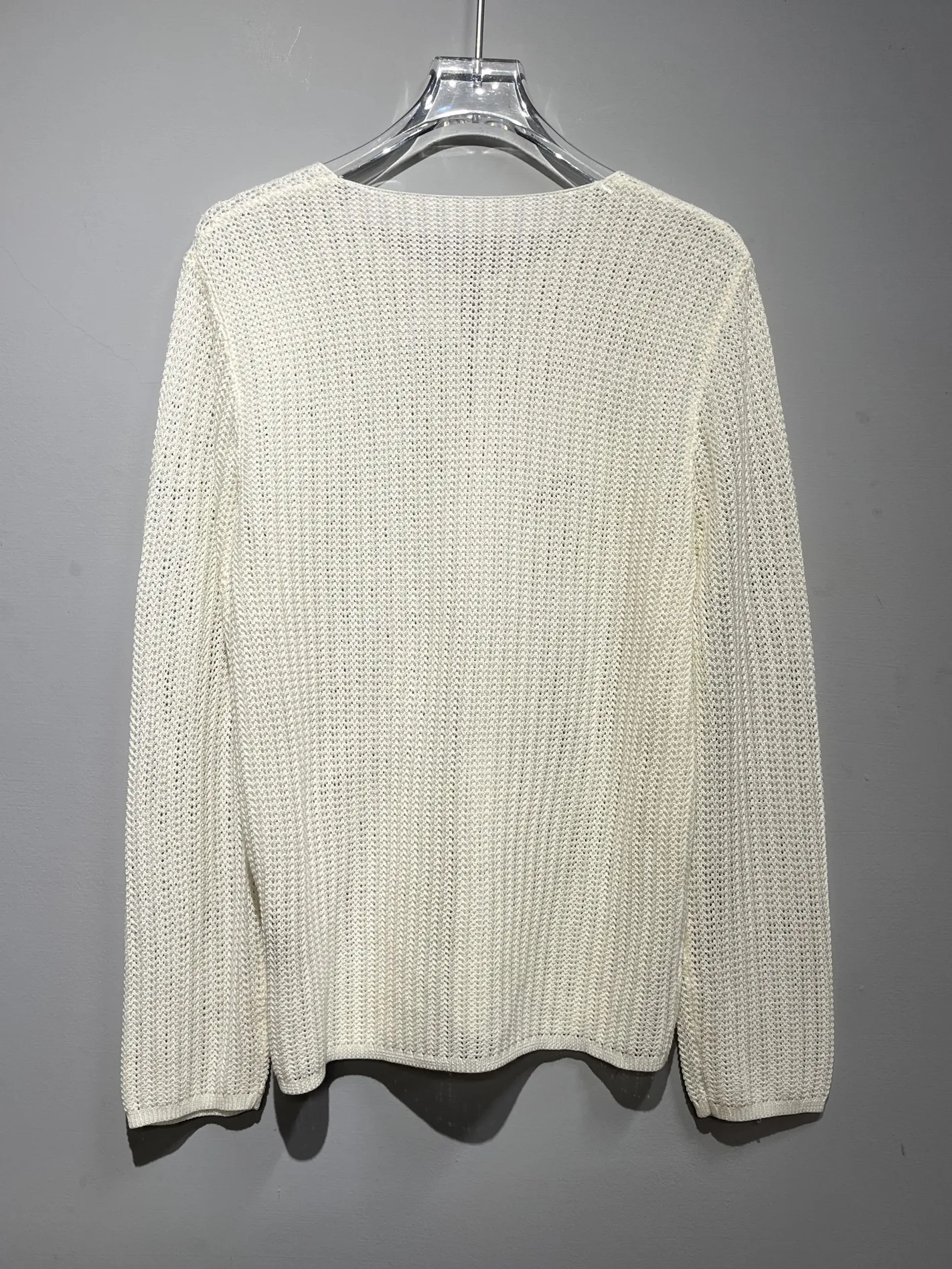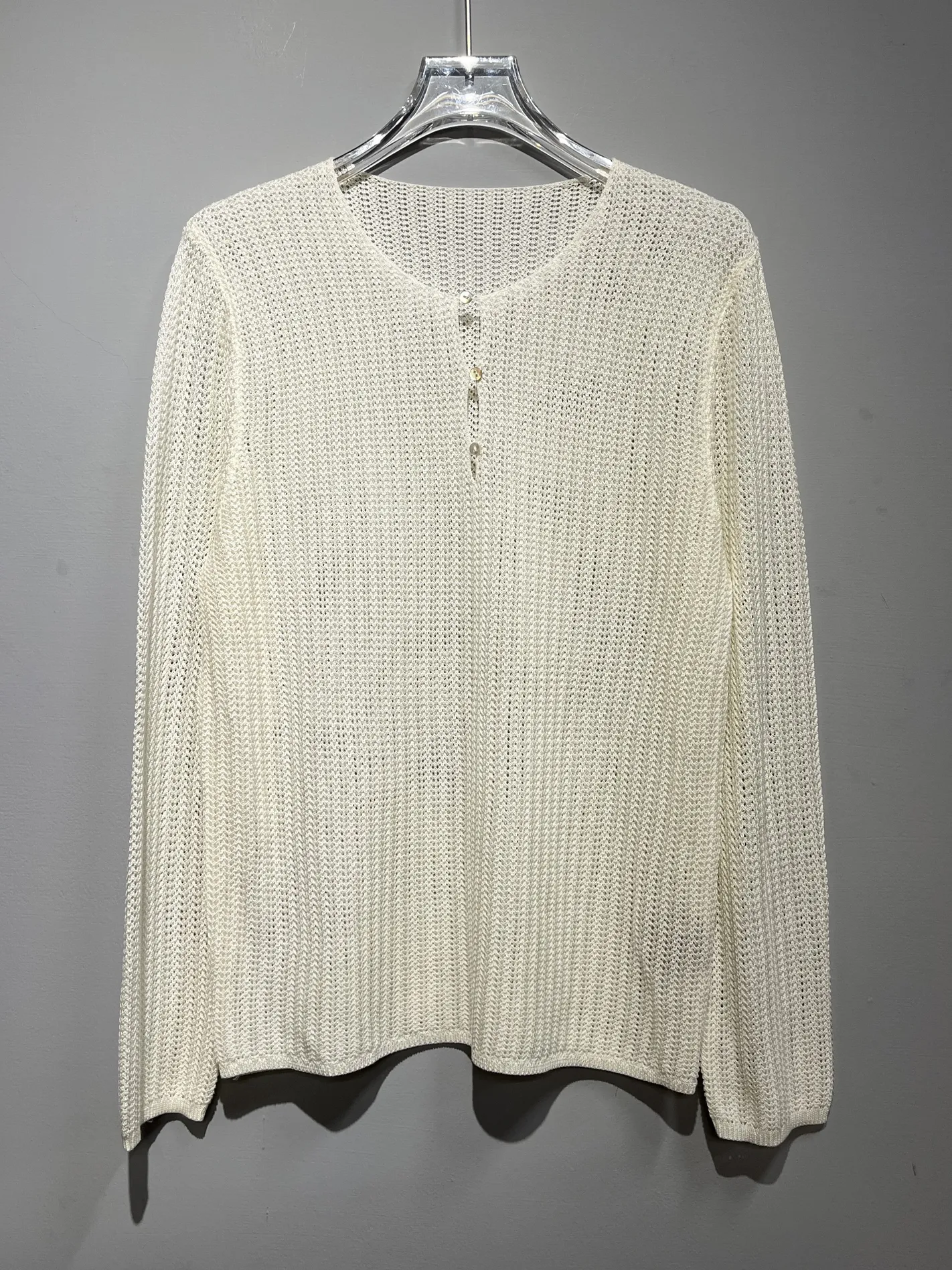 滴型三釦透編針織上衣(白)