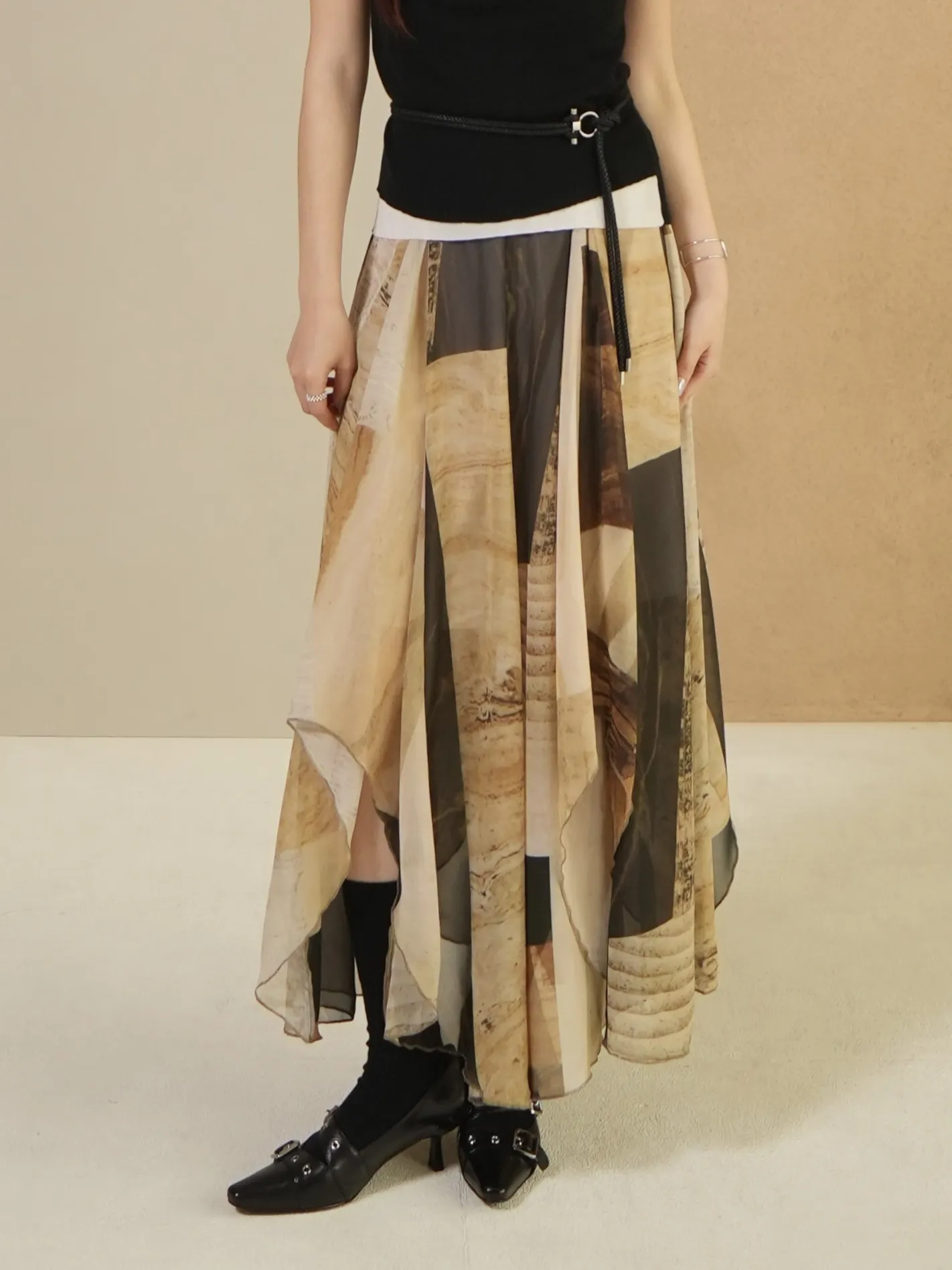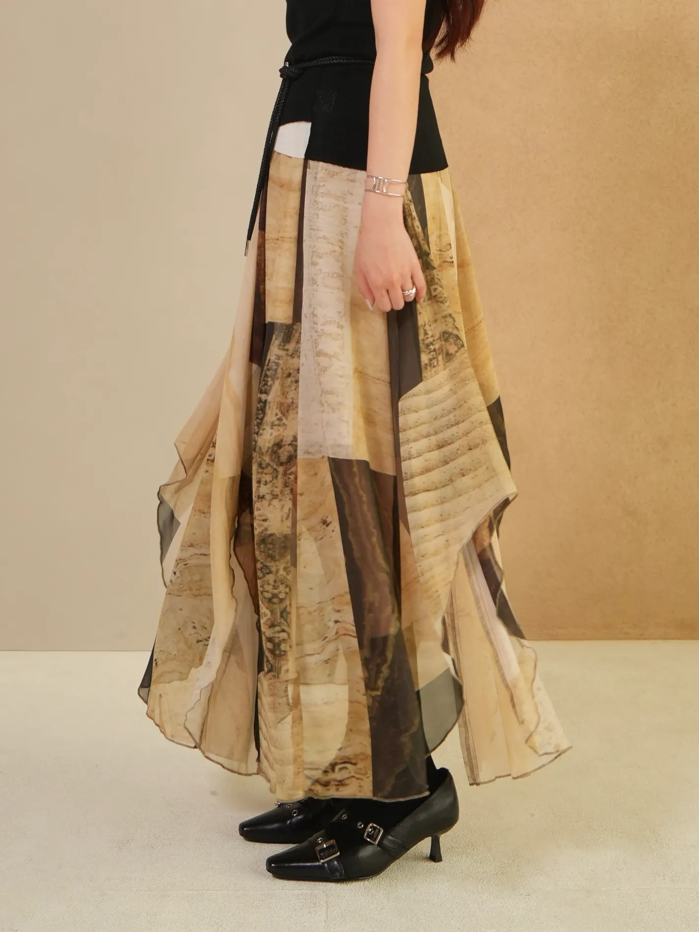 輕透裙襬加上高低不規則的線條