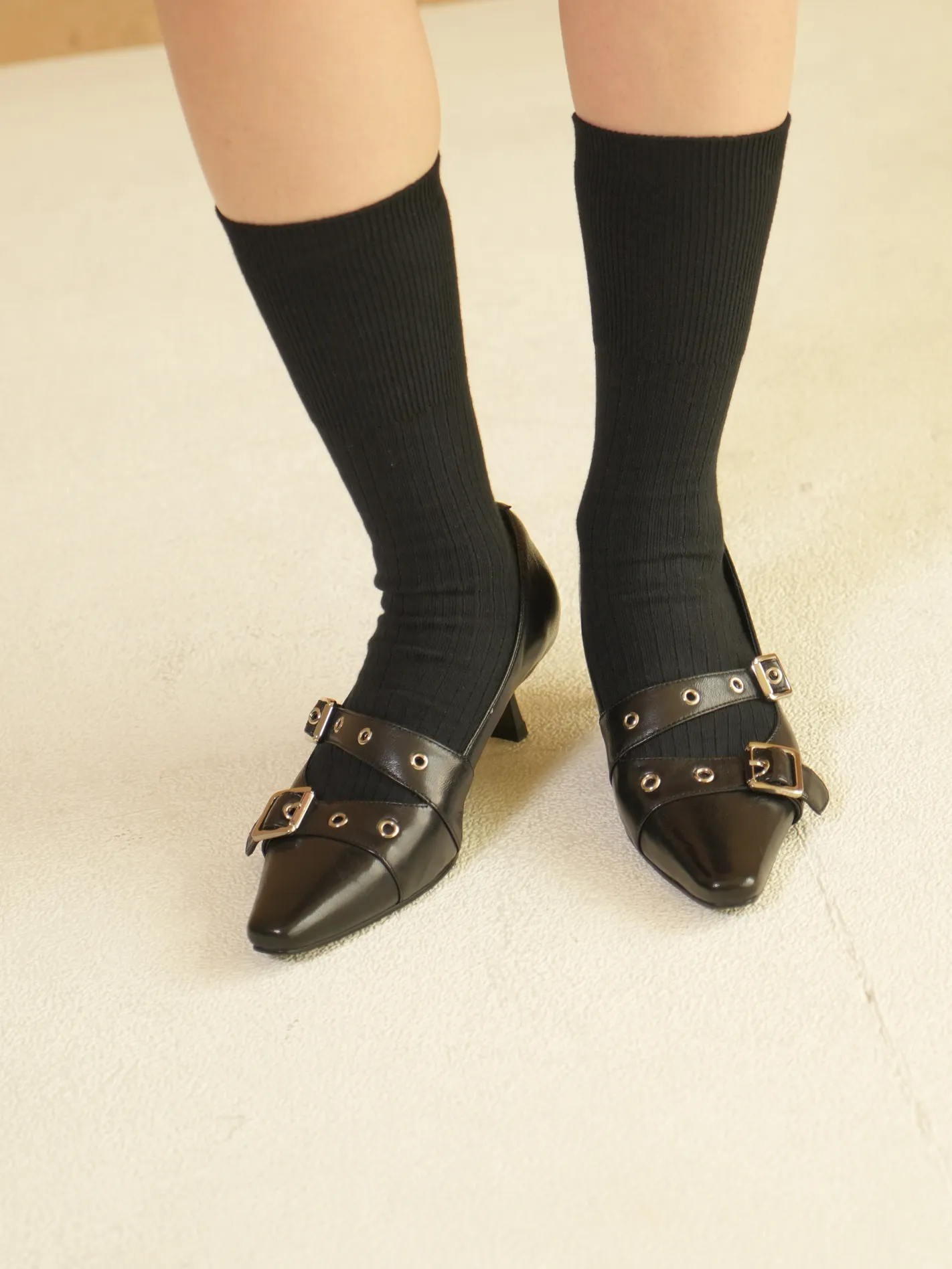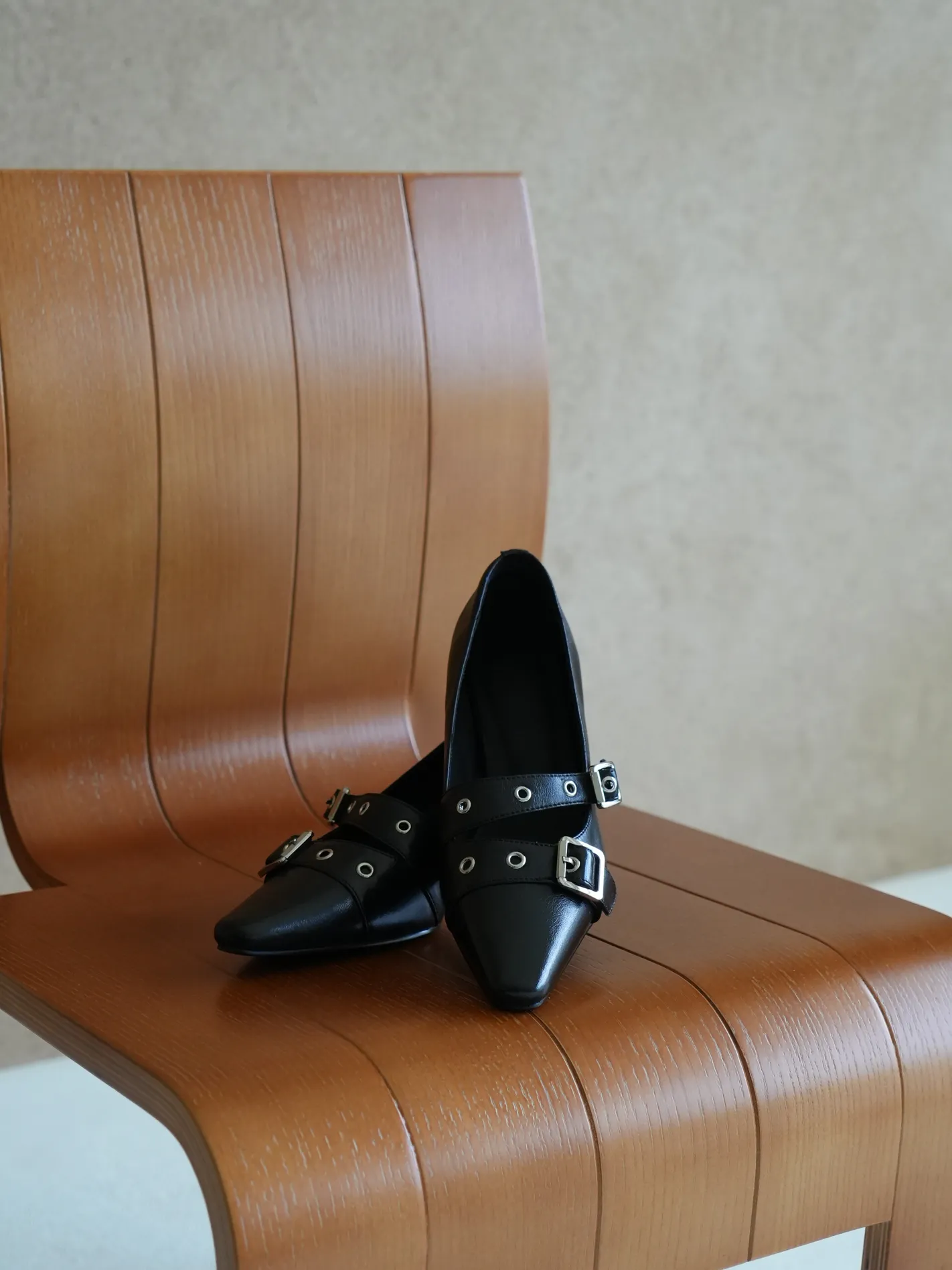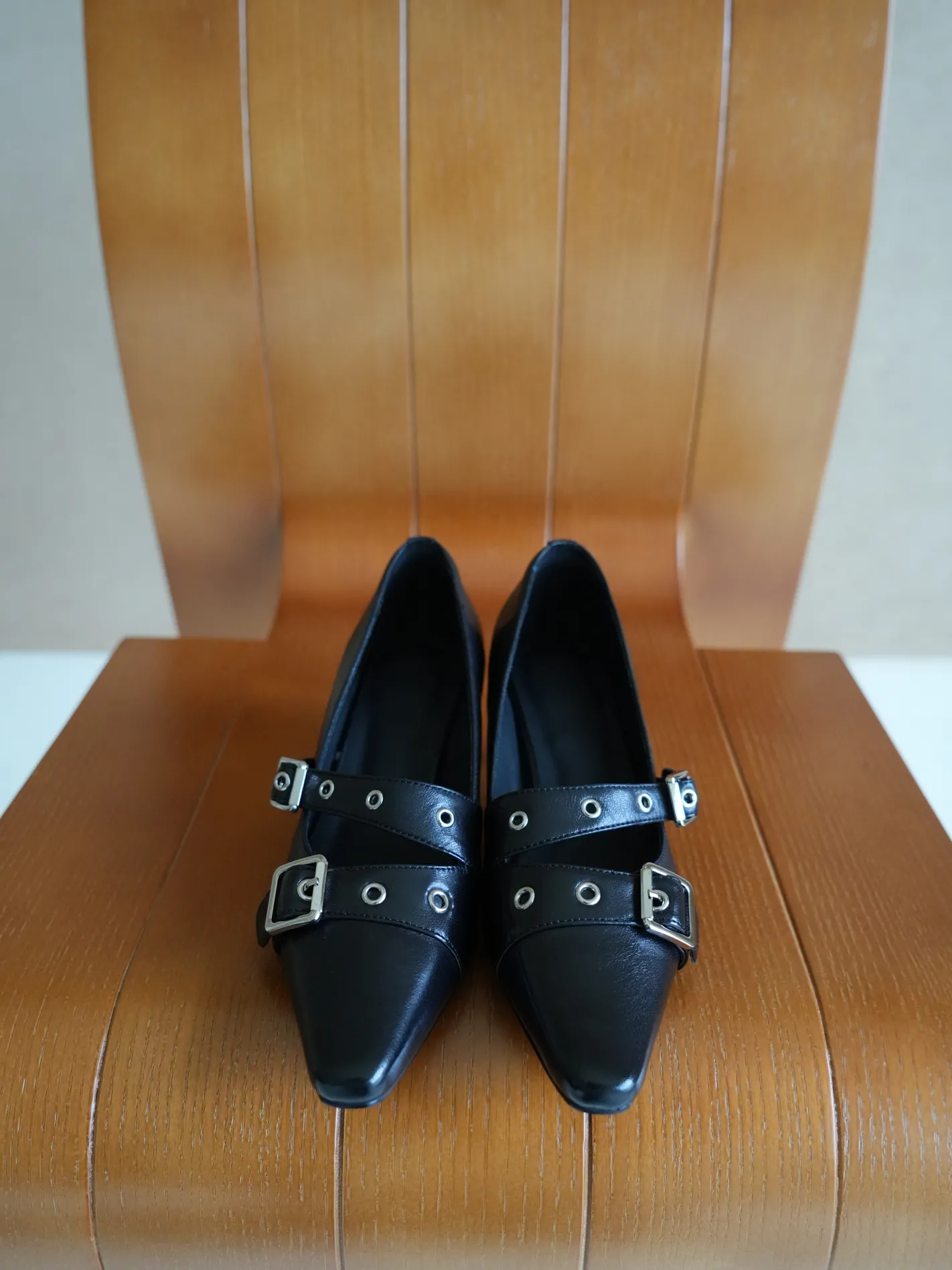 漂亮的鞋頭搭配雙釦帶和剛剛好的低跟高度
