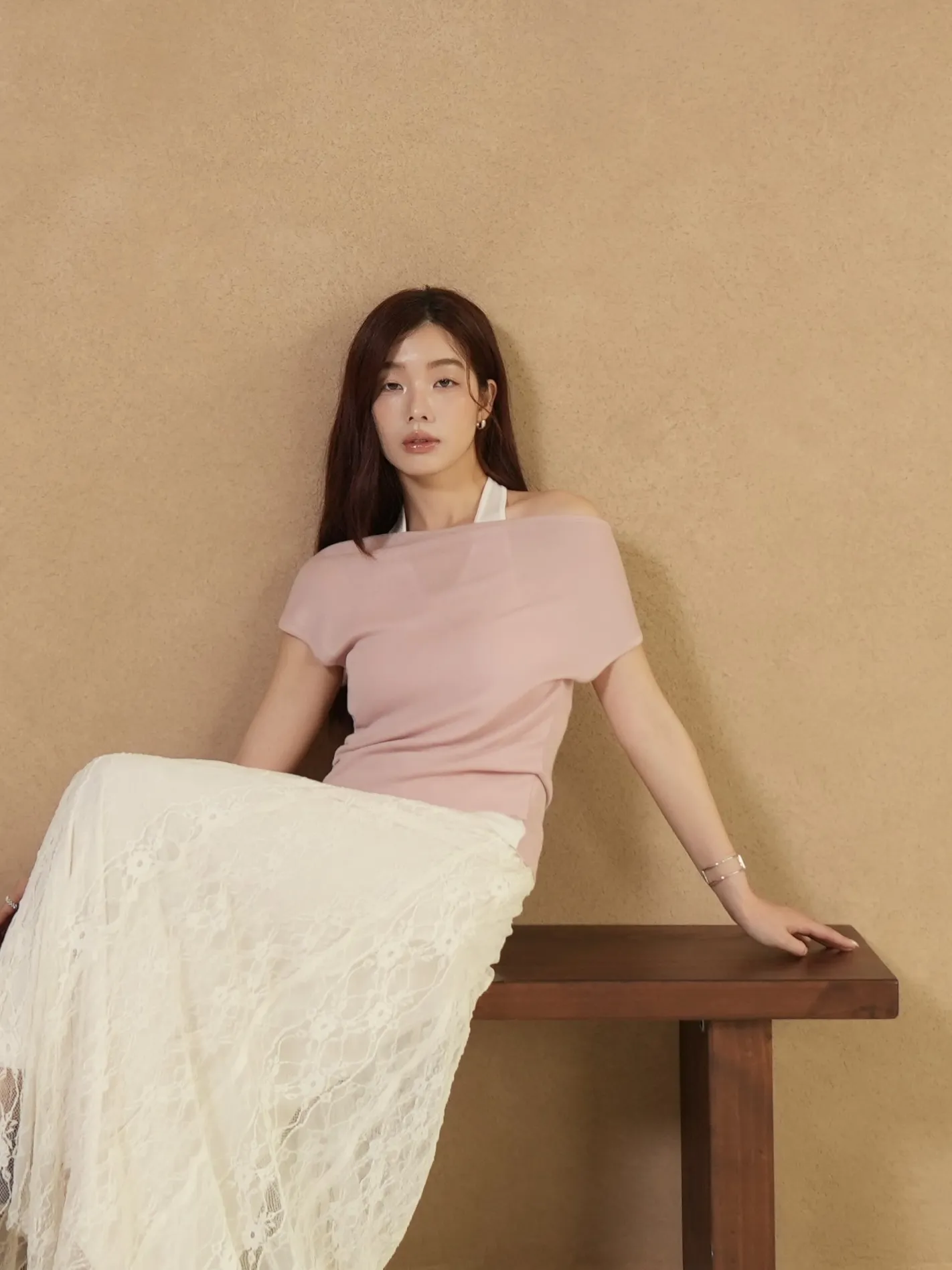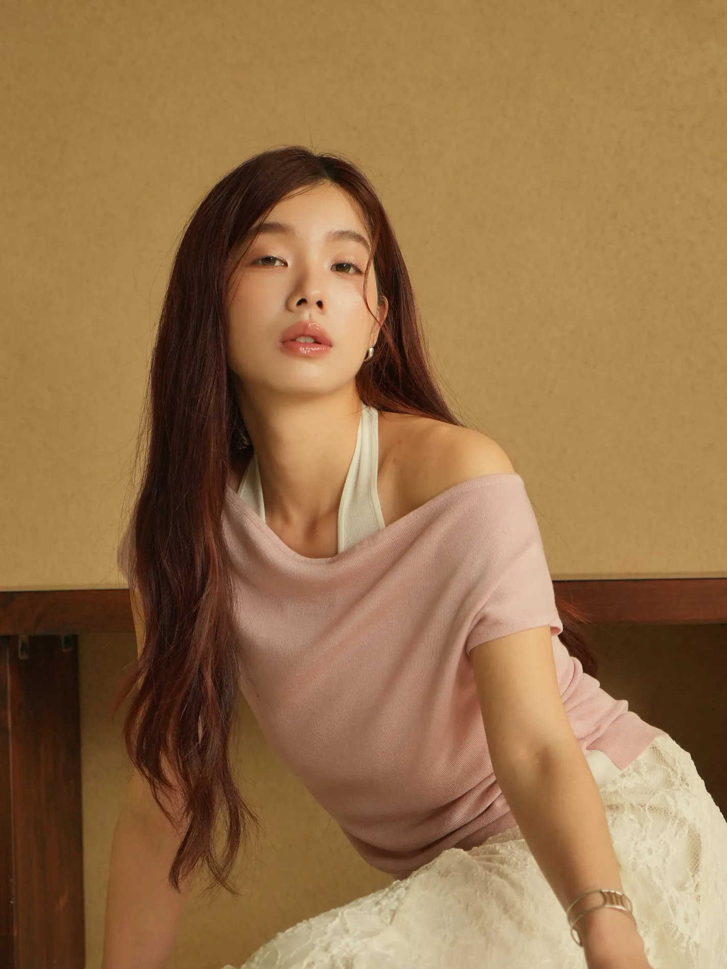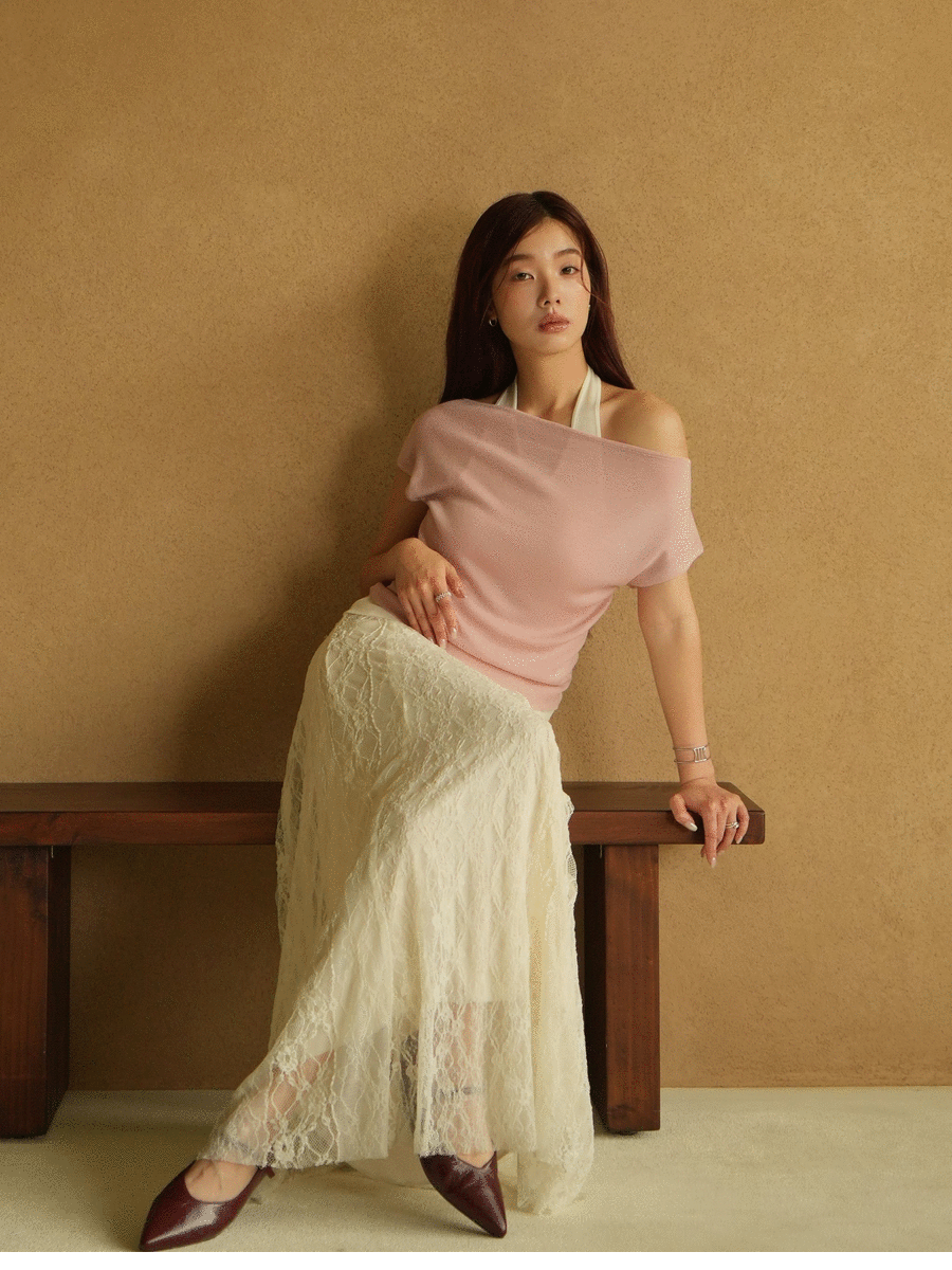 假兩件露肩多穿上衣(粉)