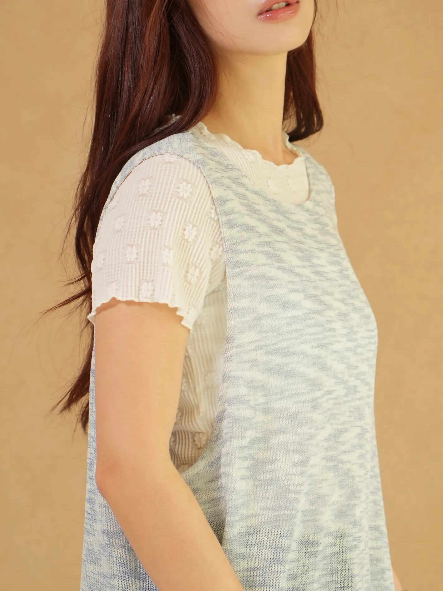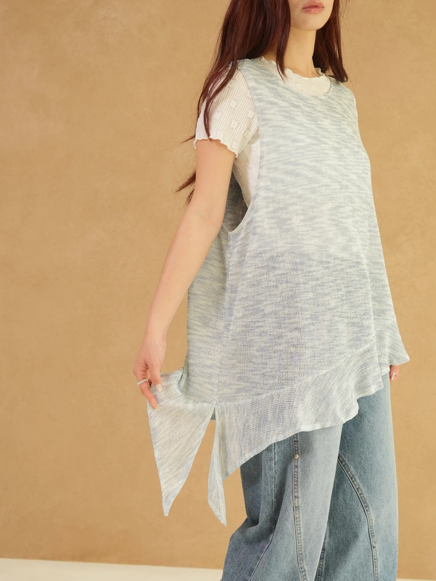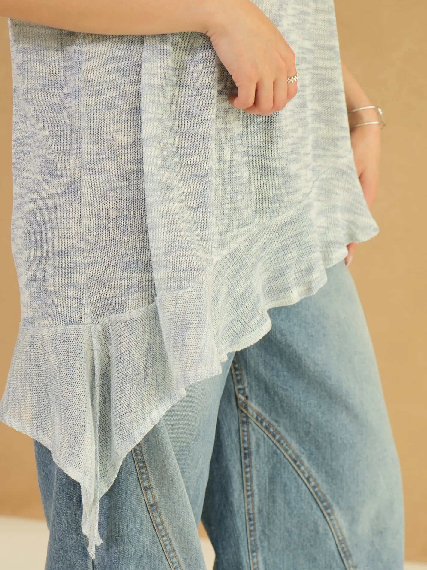 雜訊斜襬荷葉上衣(藍)