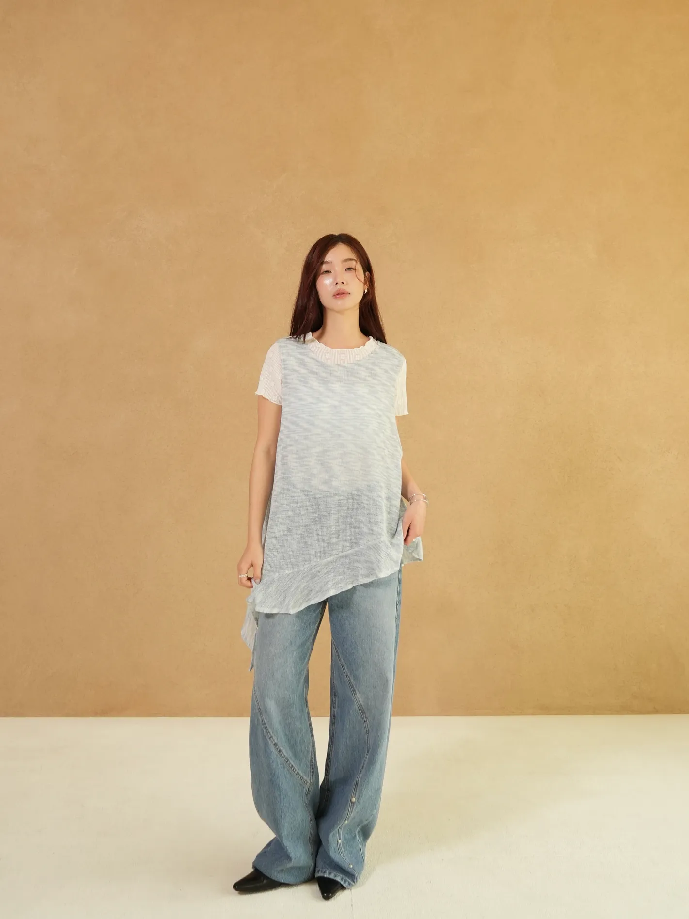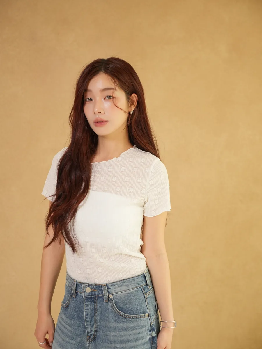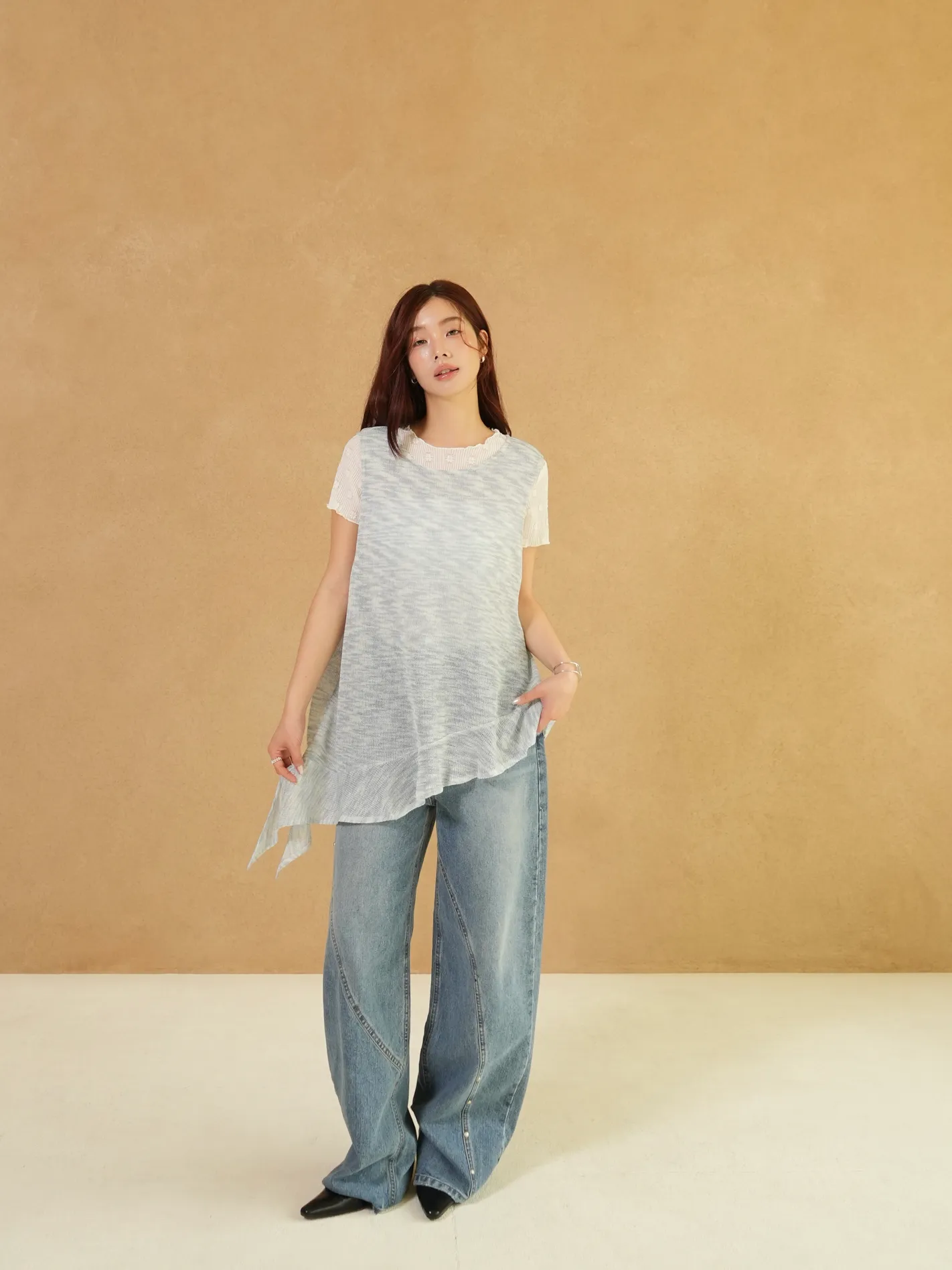 雜訊斜襬荷葉上衣(藍)