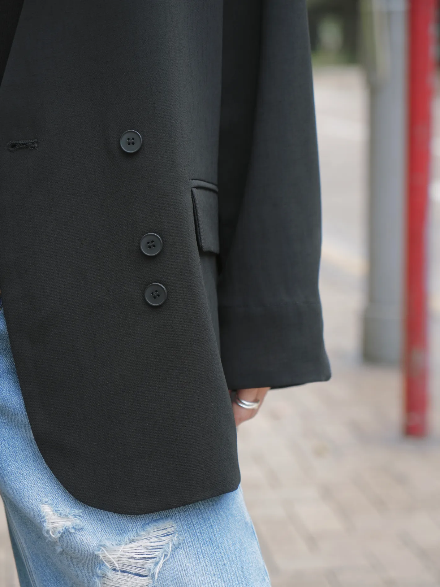 (限量預購)微透拼紗紋理西外(黑)